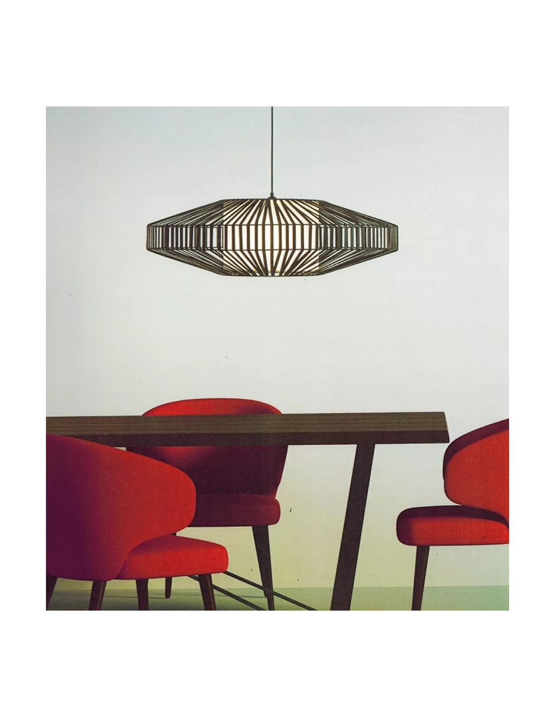 Laissez vous séduire par la très belle suspension Kay noire de la marque française de luminaires Un autre regard ! Cette suspension au design circulaire et anguleux saura s’adapter à tout type de décoration. La suspension Kay est parfaite pour une salle à manger, une chambre, un bureau ou un salon… Cette suspension design noire est constituée d’une structure géométrique en métal laqué gris anthracite habillée de ruban noir. La suspension Kay créera un beau jeu d’ombres et de lumière sur les murs et le plafond. Elle se décline en suspensions, lampadaires, appliques murales, lampes et plafonniers. Luminaire fabriqué en France.