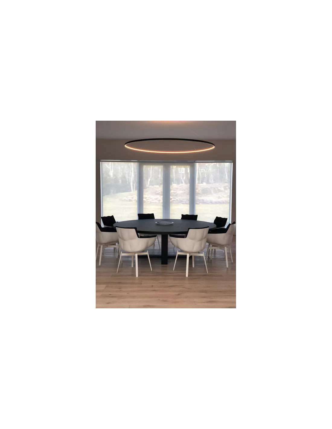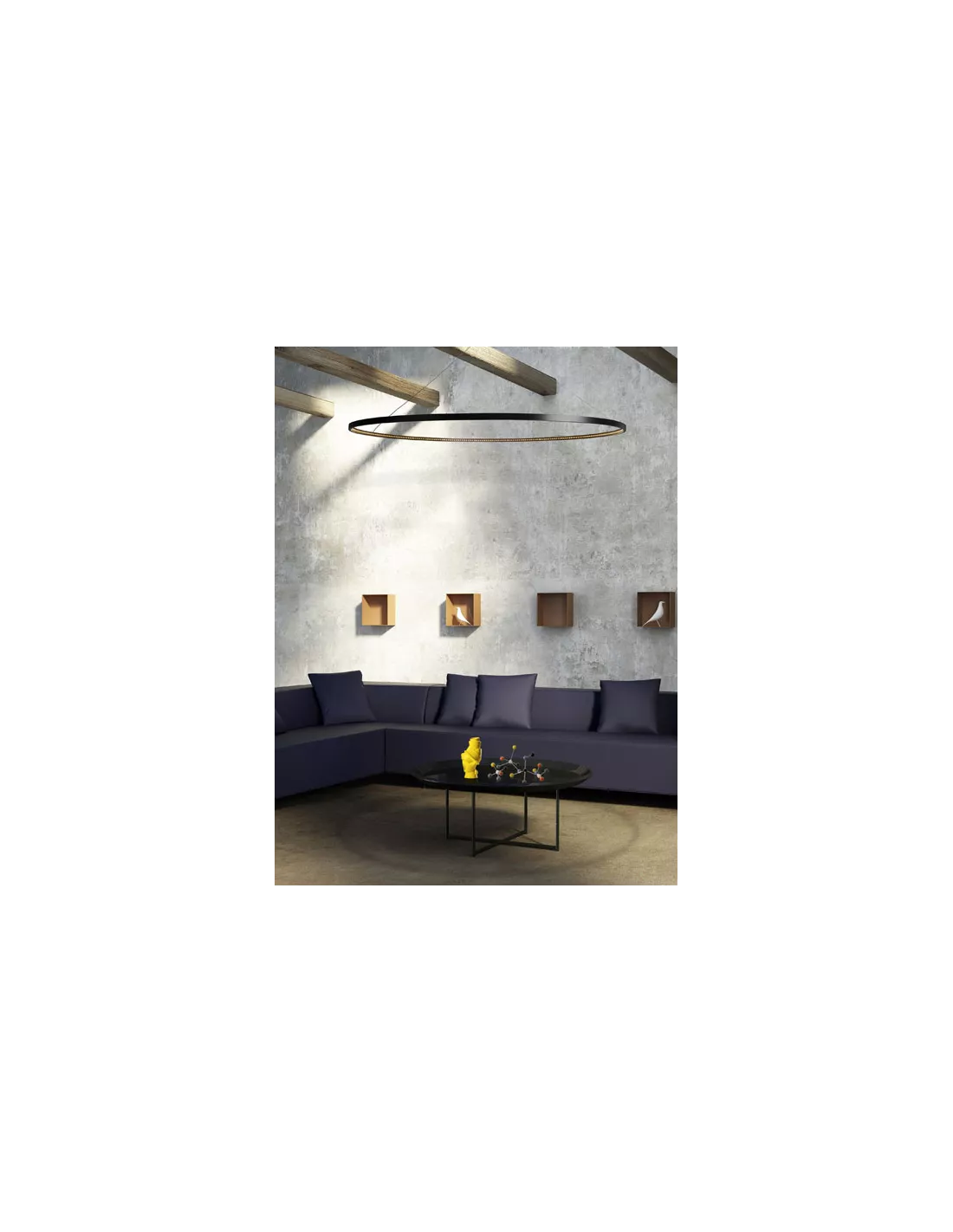 La suspension Omega Le Deun Luminaires, est une suspension originale générant une lumière directe et indirecte. Le cercle de cette suspension est en acier recouvert de peinture Epoxy noire très résistante. La suspension Omega noire est composée de 288 LED blancs chauds (2700 K°) incrustés. Cette suspension Led design noire est équipée d’un transformateur électronique de 110/220 volts, muni d’une télécommande avec variateur de puissance 0 à 100 %. La suspension Omega noire 200 vous est également proposée en finition blanc.