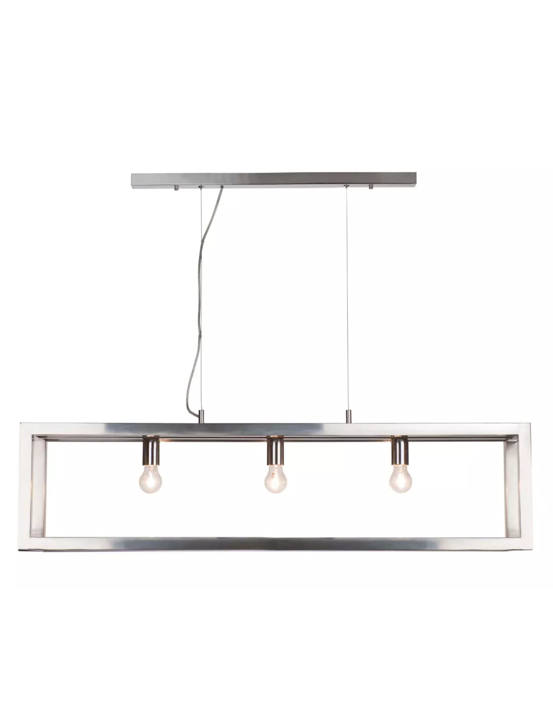 La suspension Open rectangle chrome 120 cm allie design et classique à la fois. Nous avons été séduit par cette suspension lanterne revisitée ! En effet, cette suspension design en forme de lanterne classique a été revisitée en lui donnant une structure allongée chromée qui lui confère un coté design. Elle trouvera sa place dans toutes les pièces de la maison.