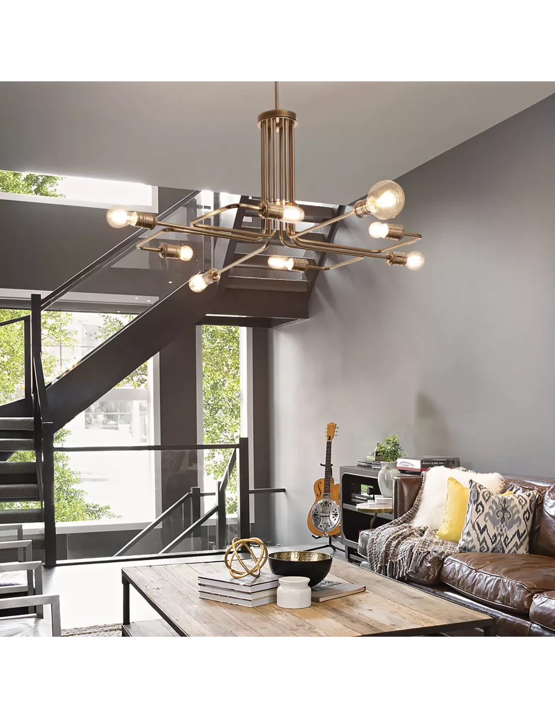 La suspension Triumph carrée Ideal Lux apporte une touche déco très tendance et s’intègre parfaitement dans un intérieur classique ou contemporain. Cette suspension design est réalisée en métal finition laiton vieilli et ampoules apparentes.