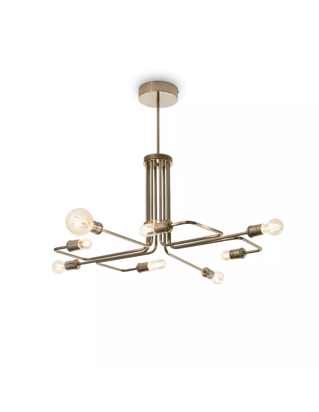 Suspension design carrée en métal finition laiton vieilli et ampoules apparentes, Ideal Lux