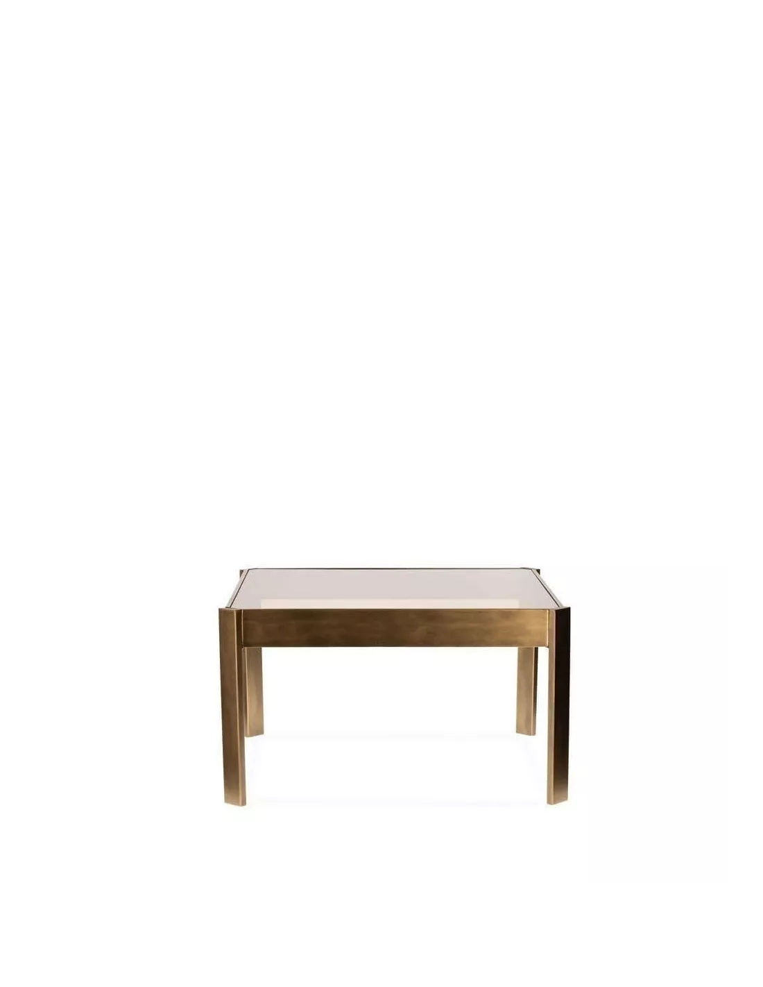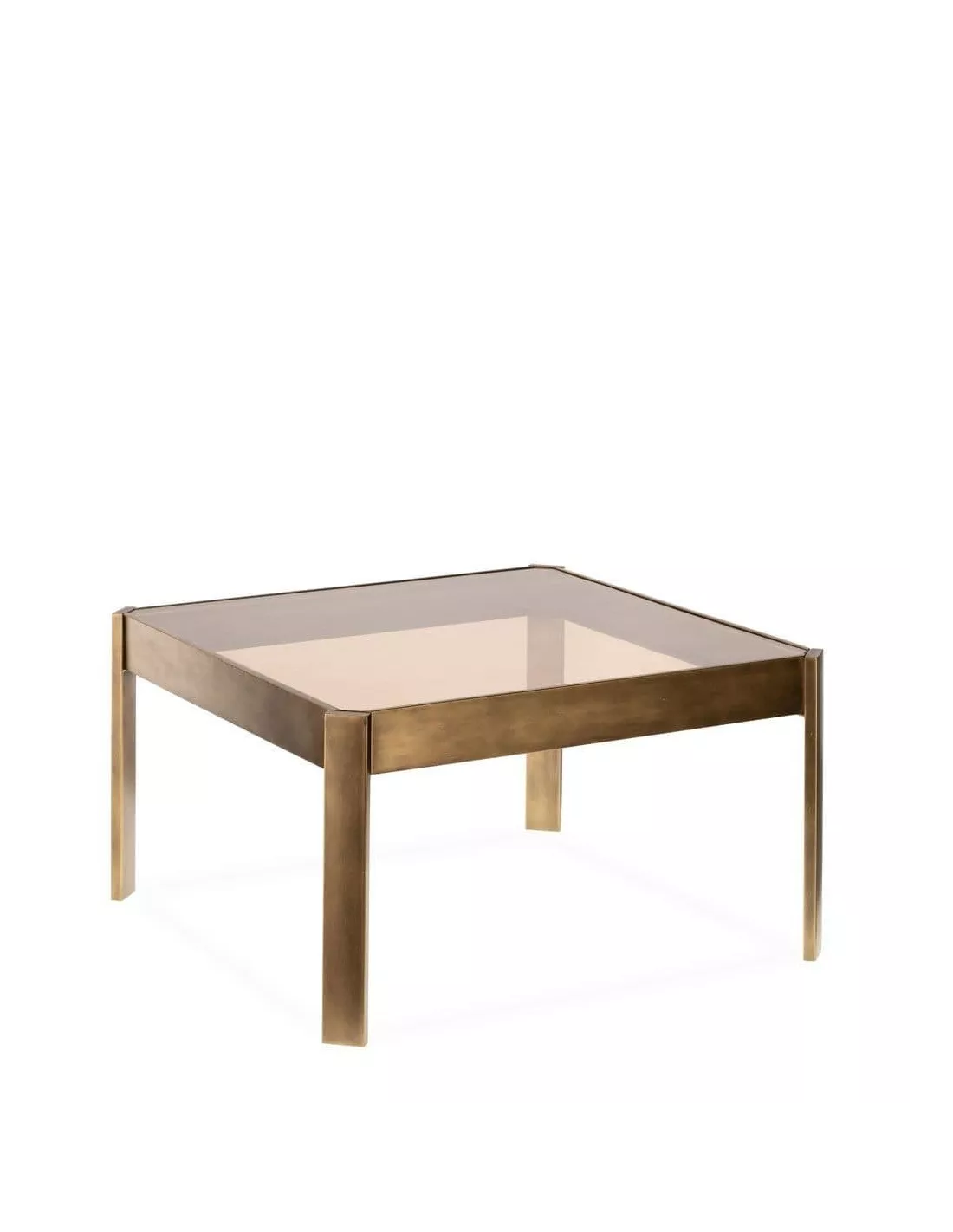 Table basse carrée bronze et verre fumé 81x81cm