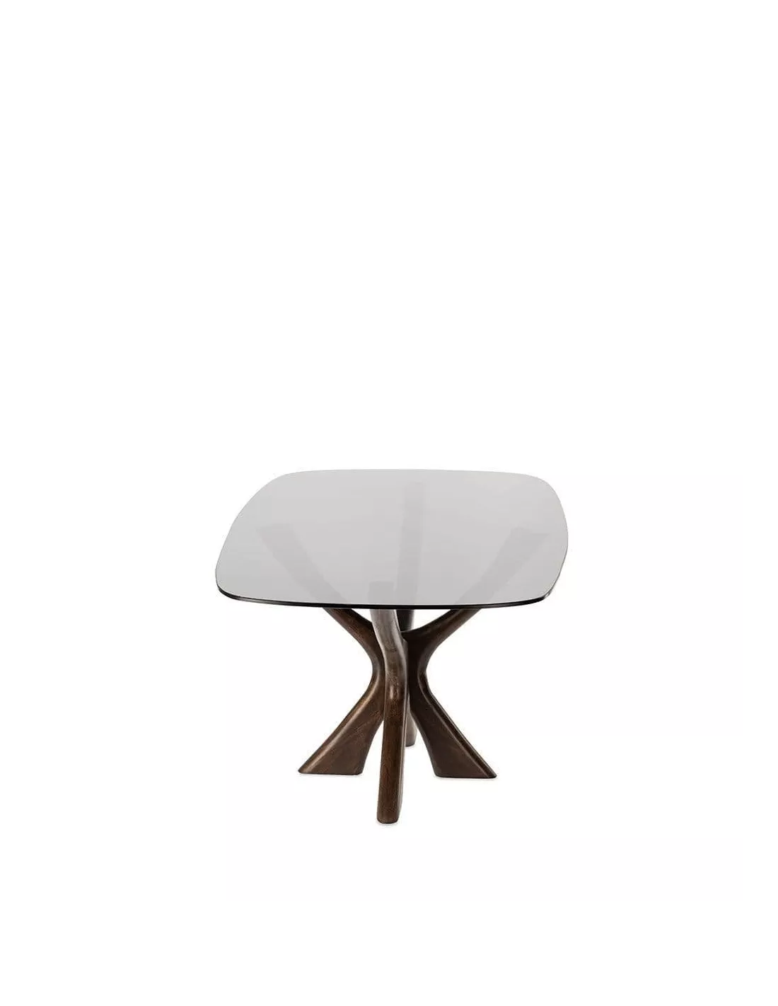 Table basse rectangulaire brune en bois et verre fumé 110x60cm