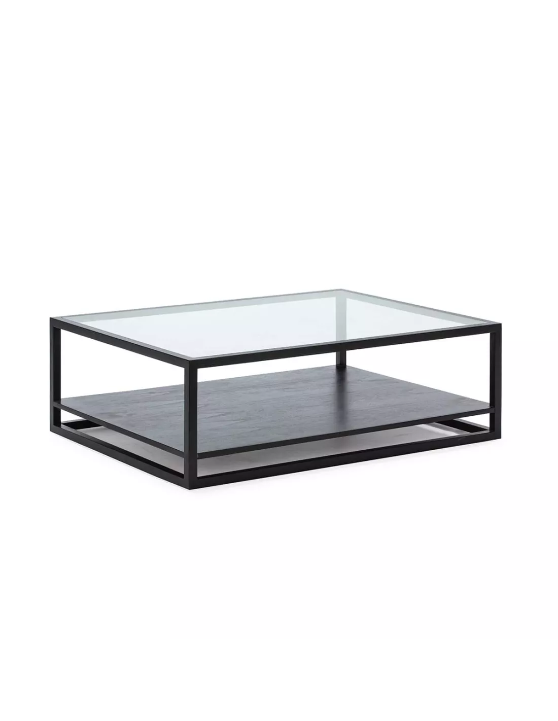 Table basse design noire en verre et bois 120×90 cm, Thai Natura