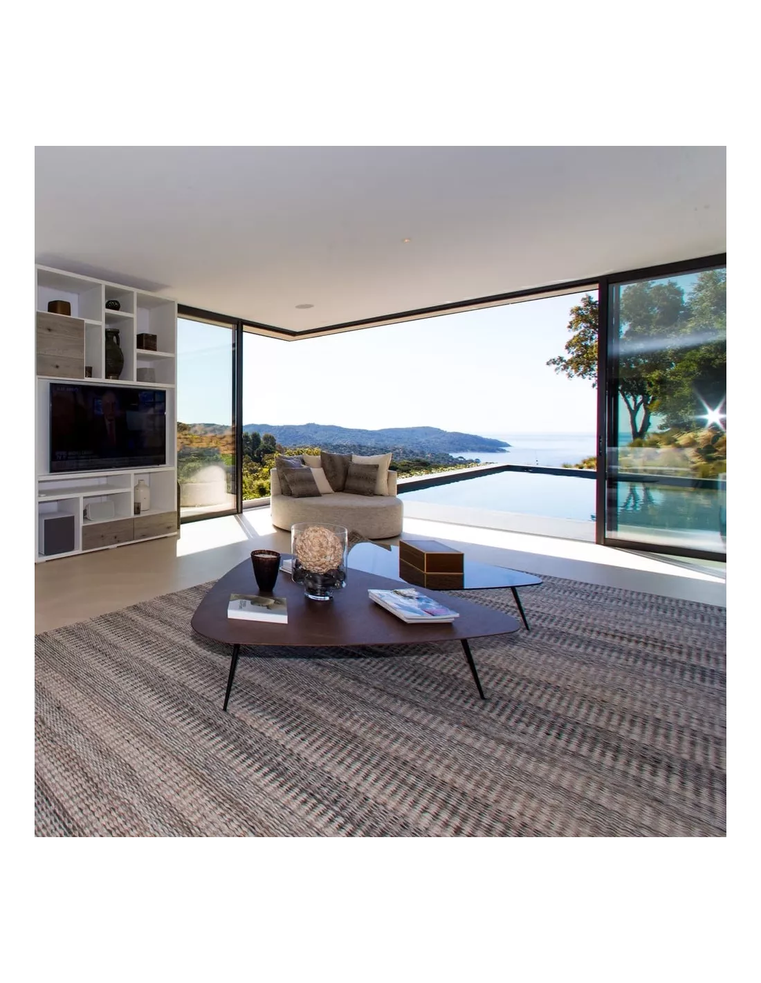 Table basse design triangulaire en verre fumé et piètement anthracite, PH Collection