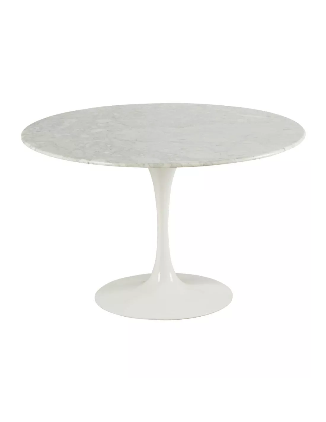 Très tendance, cette table de repas ronde Marbella en marbre blanc apportera une touche design et seventies à votre décoration intérieure. Son plateau est en marbre blanc veiné gris, et son piètement en métal blanc. La base ronde de cette table à manger lui confère stabilité et solidité et lui confère une ligne actuelle et raffinée. La taille de son plateau vous permettra d’ y installer 4 personnes pour un repas entre amis ou en famille.