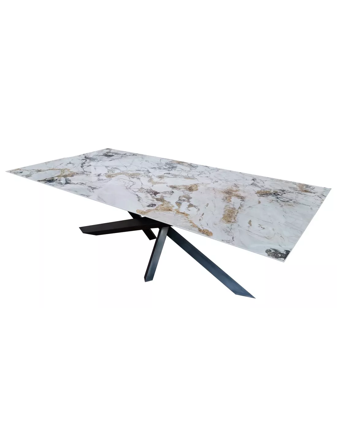 Laissez vous séduire par le design du piètement de la table de salle à manger Céramique Versatil empreint d’élégance et qui offre un confort optimal pour les jambes. Les finitions de plateau en céramique sont très variées ! Très tendance et naturelle, la céramique est 100% minérale et 100% recyclable. Ses performances sont exceptionnelles puisqu’elle est insensible aux tâches, ultra-résistante aux rayures et à la chaleur, et d’une hygiène irréprochable. La table en céramique est donc très pratique. Cette table de salle à manger en céramique sera un véritable accessoire de décoration d’intérieur pour une table de repas élégante et raffinée. Le modèle présenté mesure 240x110cm.