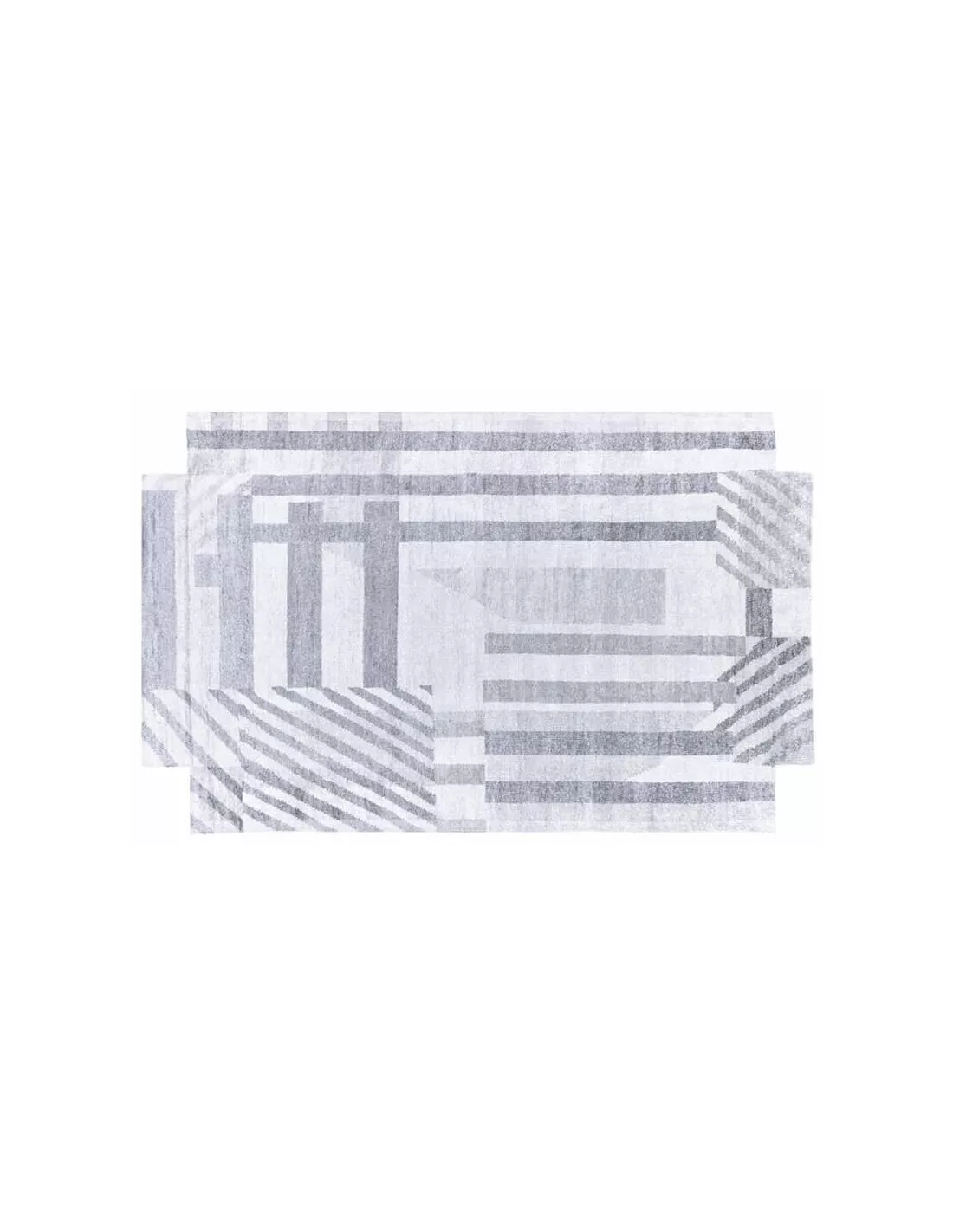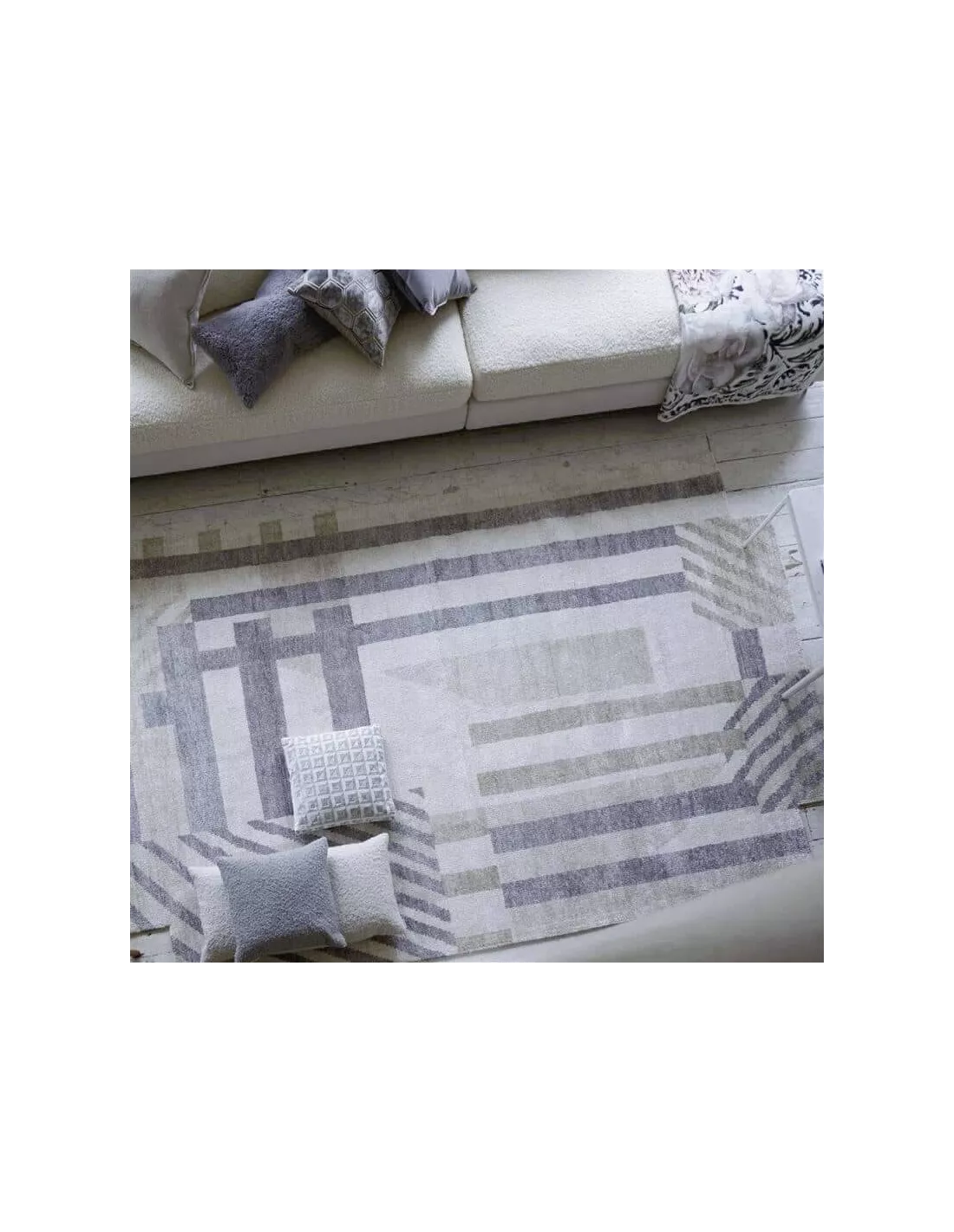 Tapis design gris au contour déstructuré et aux motifs géométrique, Designers Guild