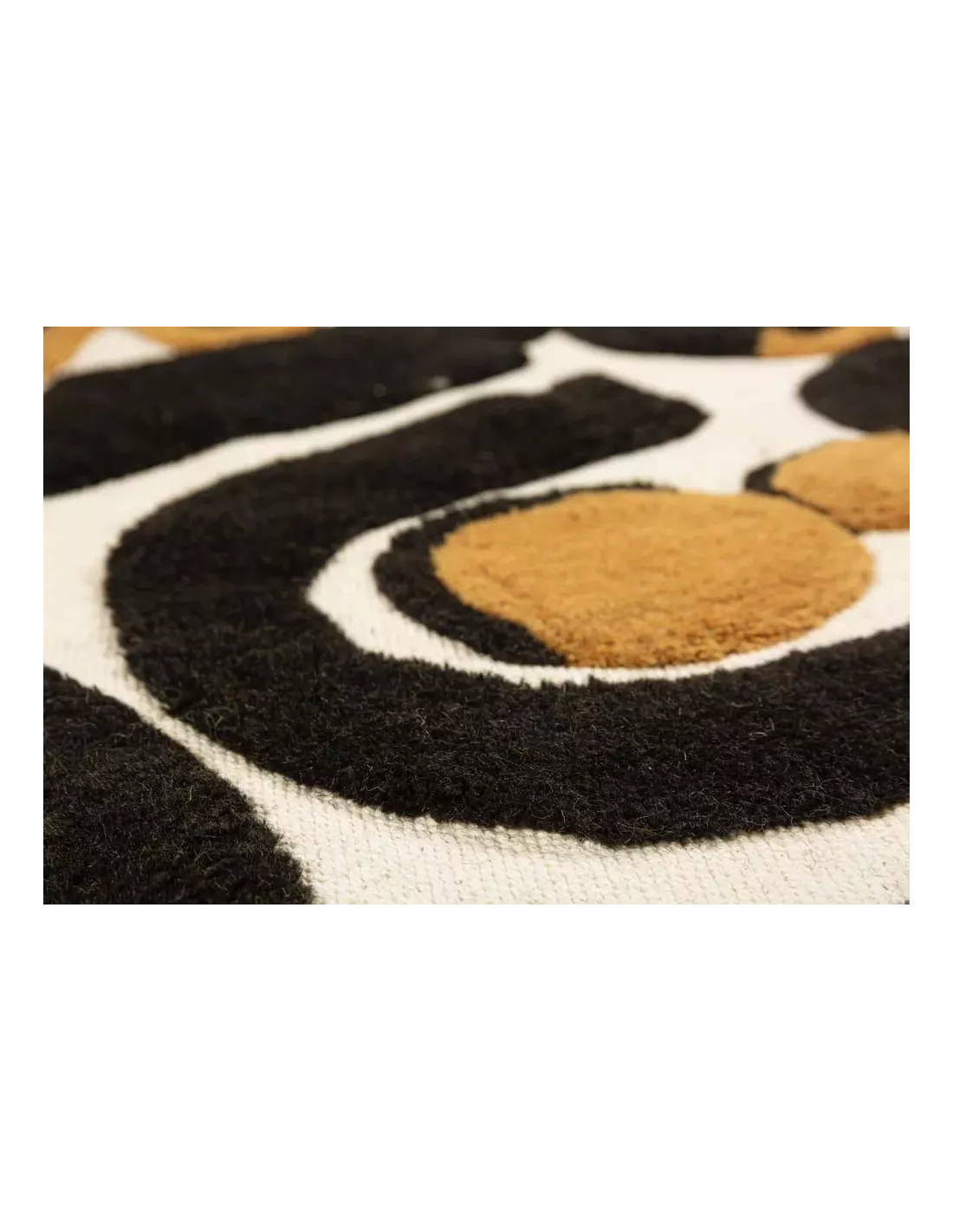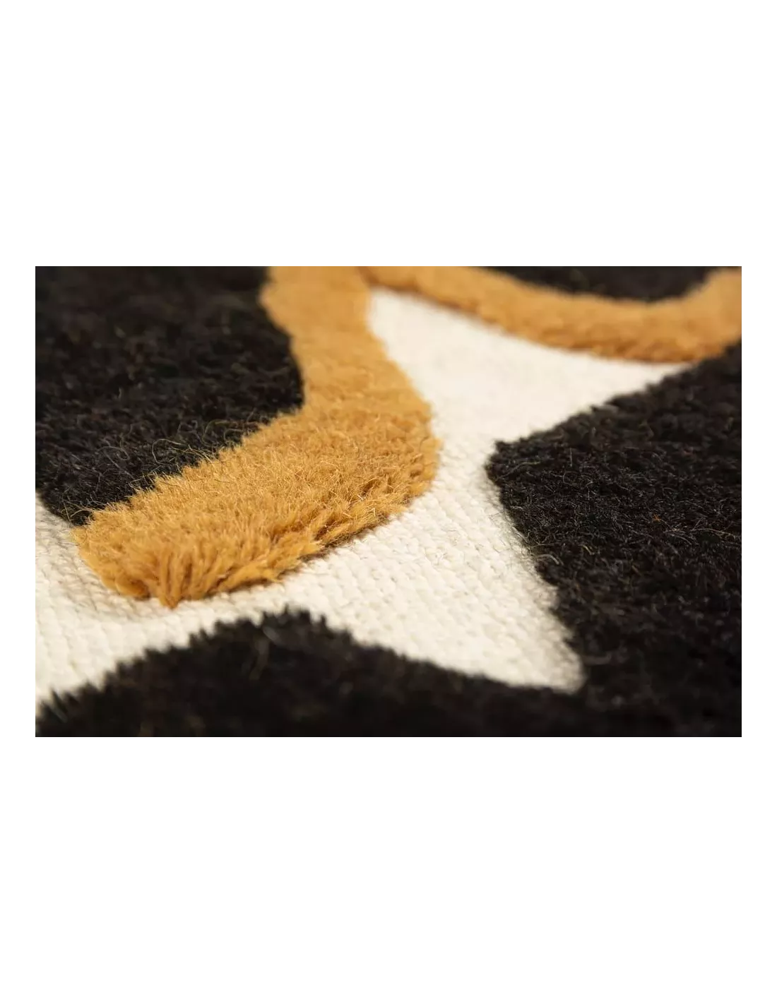 Le motif raffiné du tapis Atlas, décliné dans des nuances élégantes de blanc, noir et ocre, crée une ambiance chaleureuse et arty. Le tissage méticuleux sur un métier à tisser confère au tapis une texture uniforme et une finition haut de gamme.