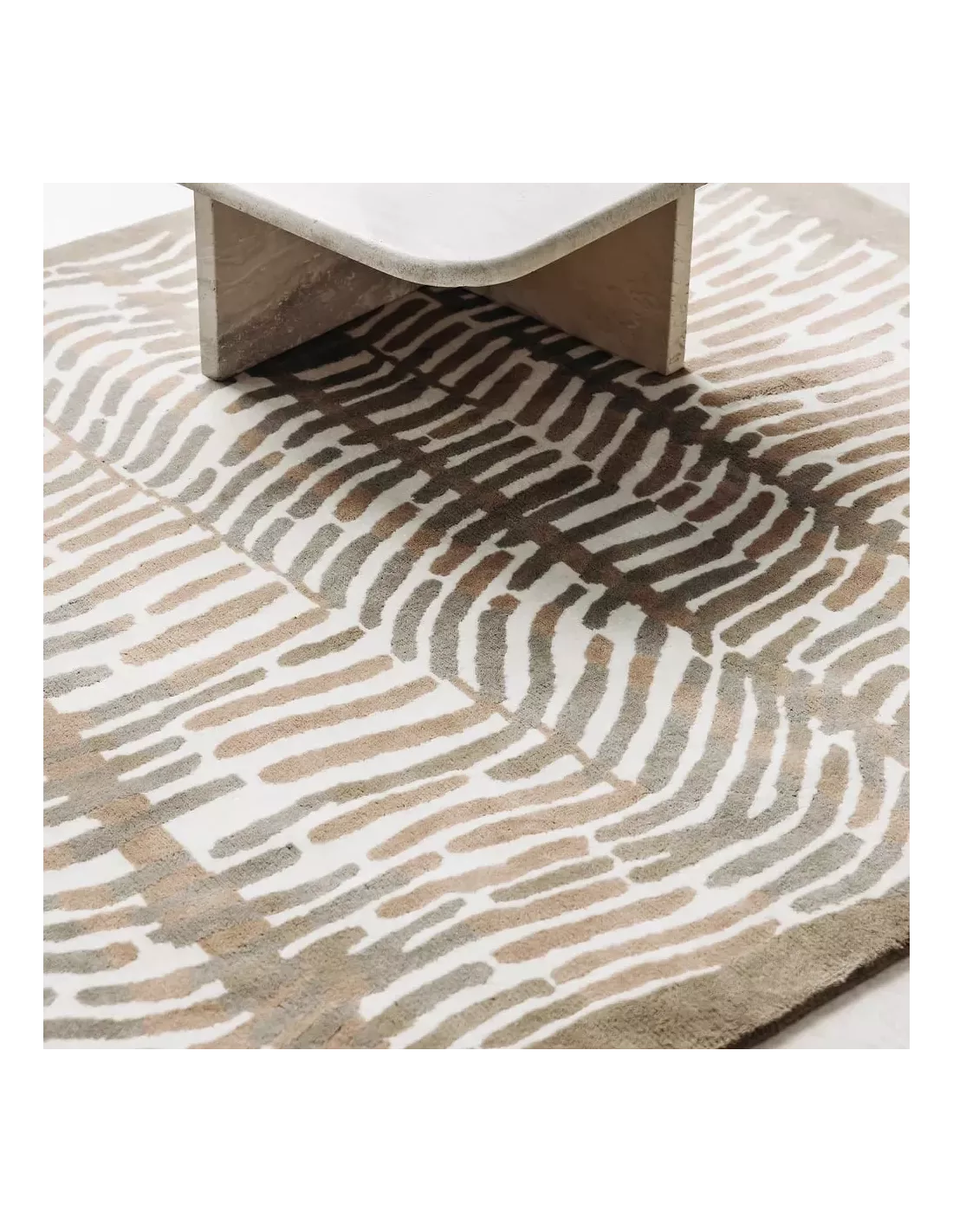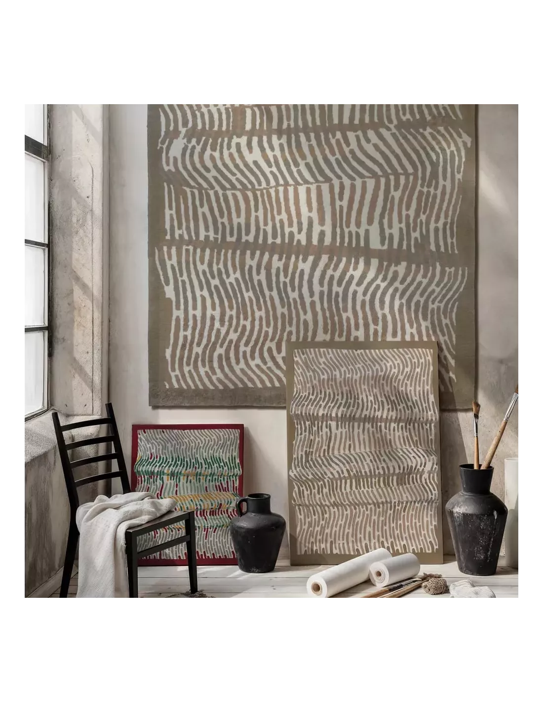 Pour reproduire fidèlement ce dessin singulier, les artisans indiens ont eu recours à la technique du tapis noué main, considérée comme la plus complexe des techniques artisanales. Cette méthode ancestrale, qui nécessite un savoir-faire et une dextérité hors normes, a permis de retranscrire avec précision les moindres détails du motif original, jusqu’aux imperfections qui font tout le charme de cette pièce.