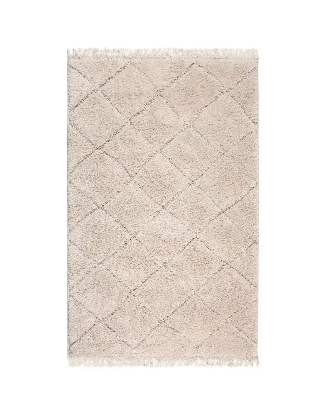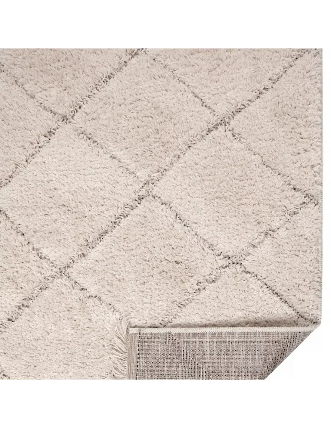 Tapis blanc cassé quadrillé de lignes irrégulières de style berbère, Vivaraise