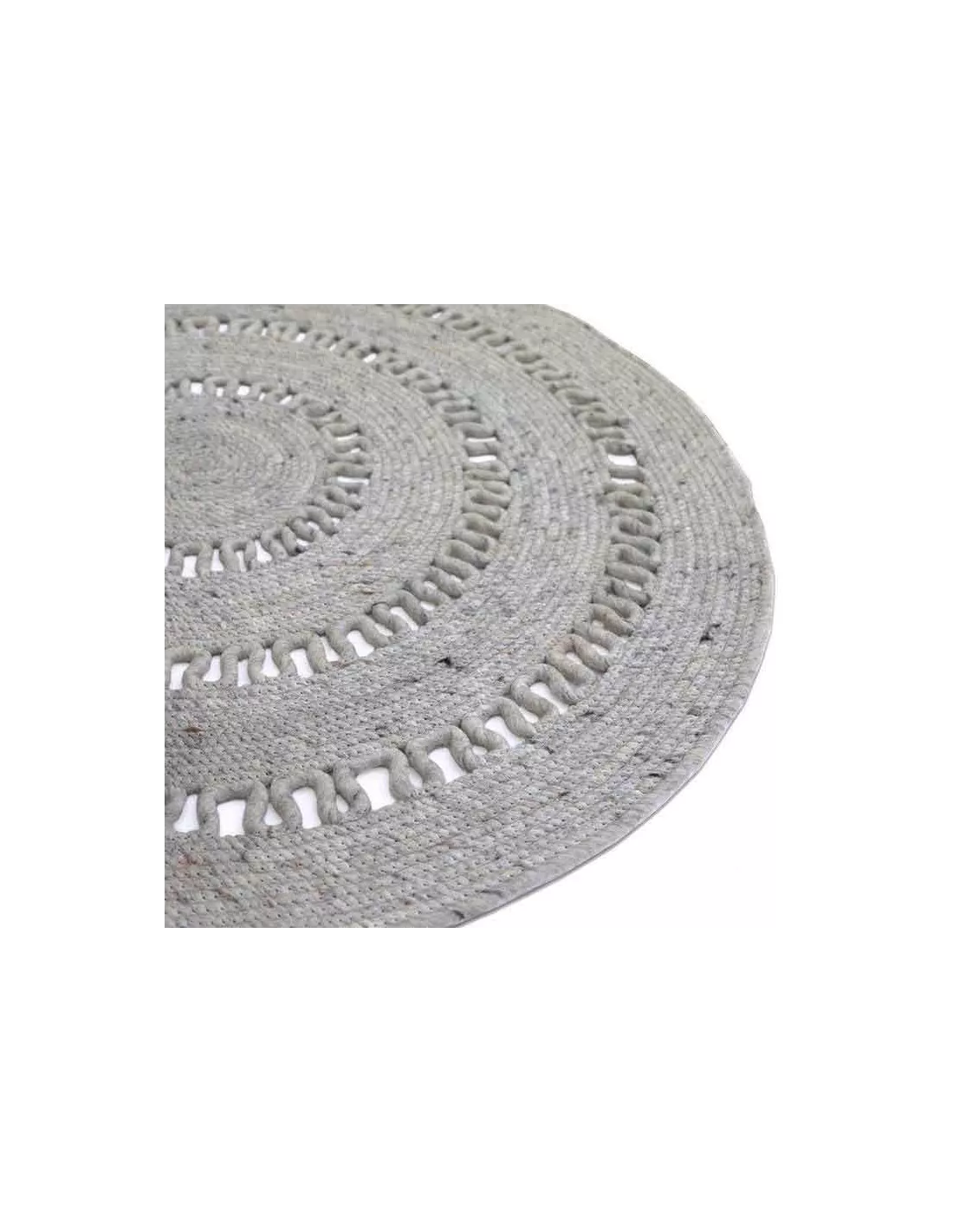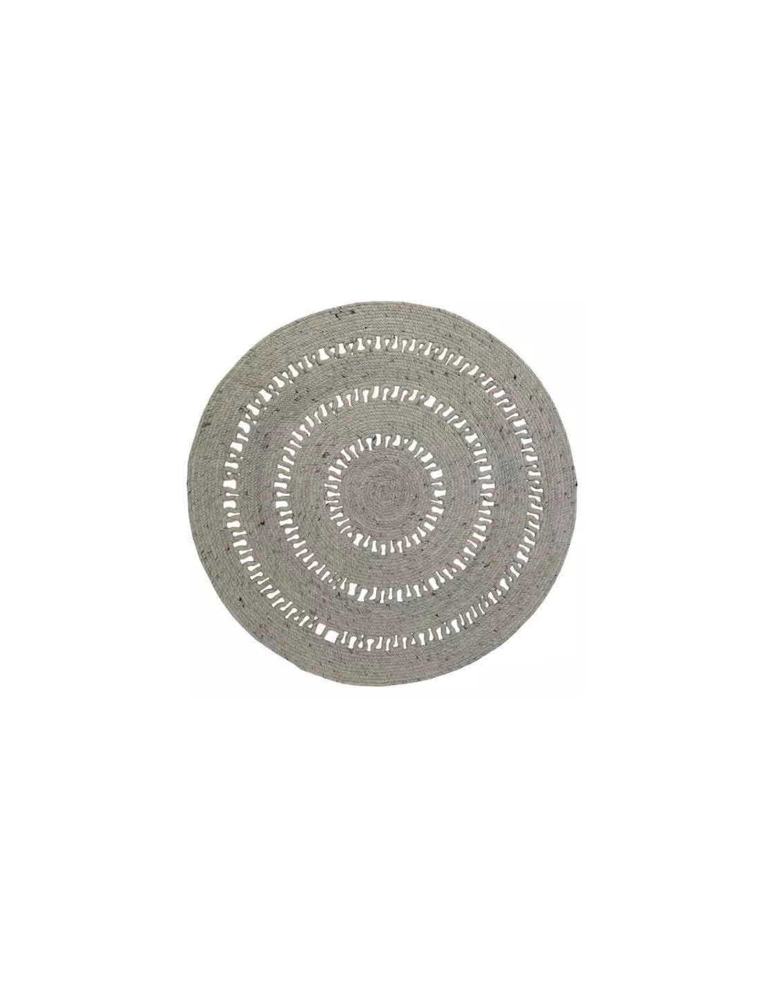 Tapis rond gris en laine feutrée et coton crocheté, Nattiot
