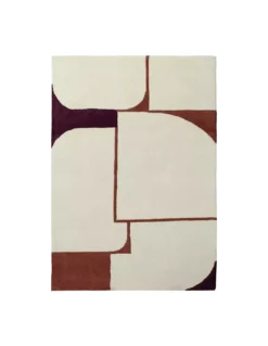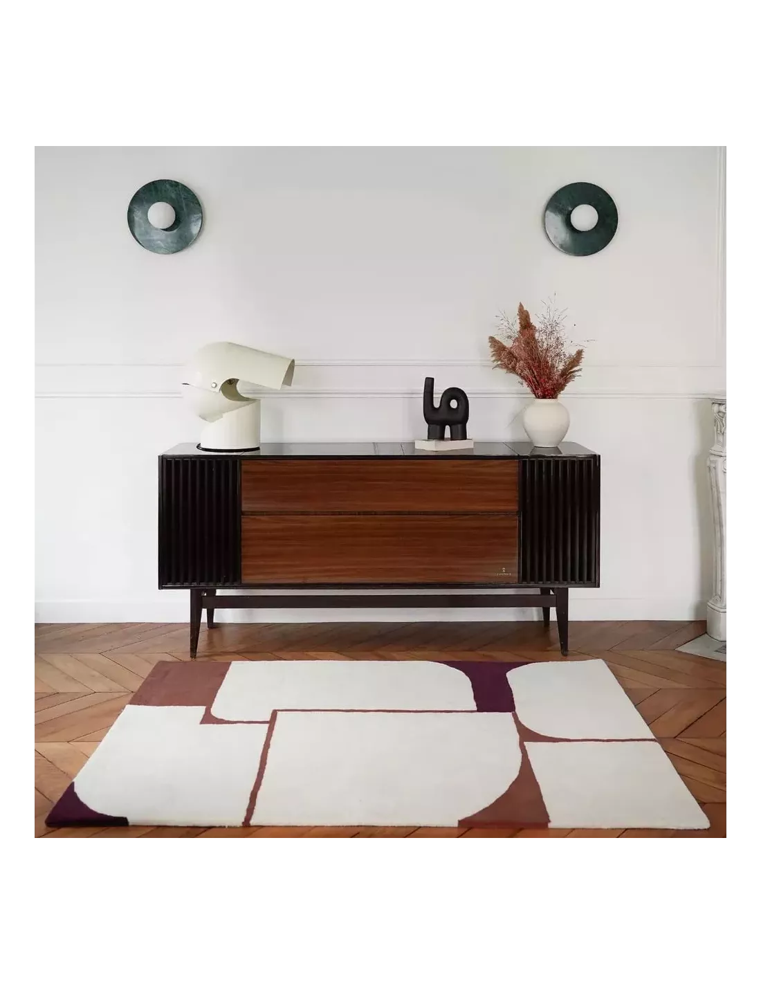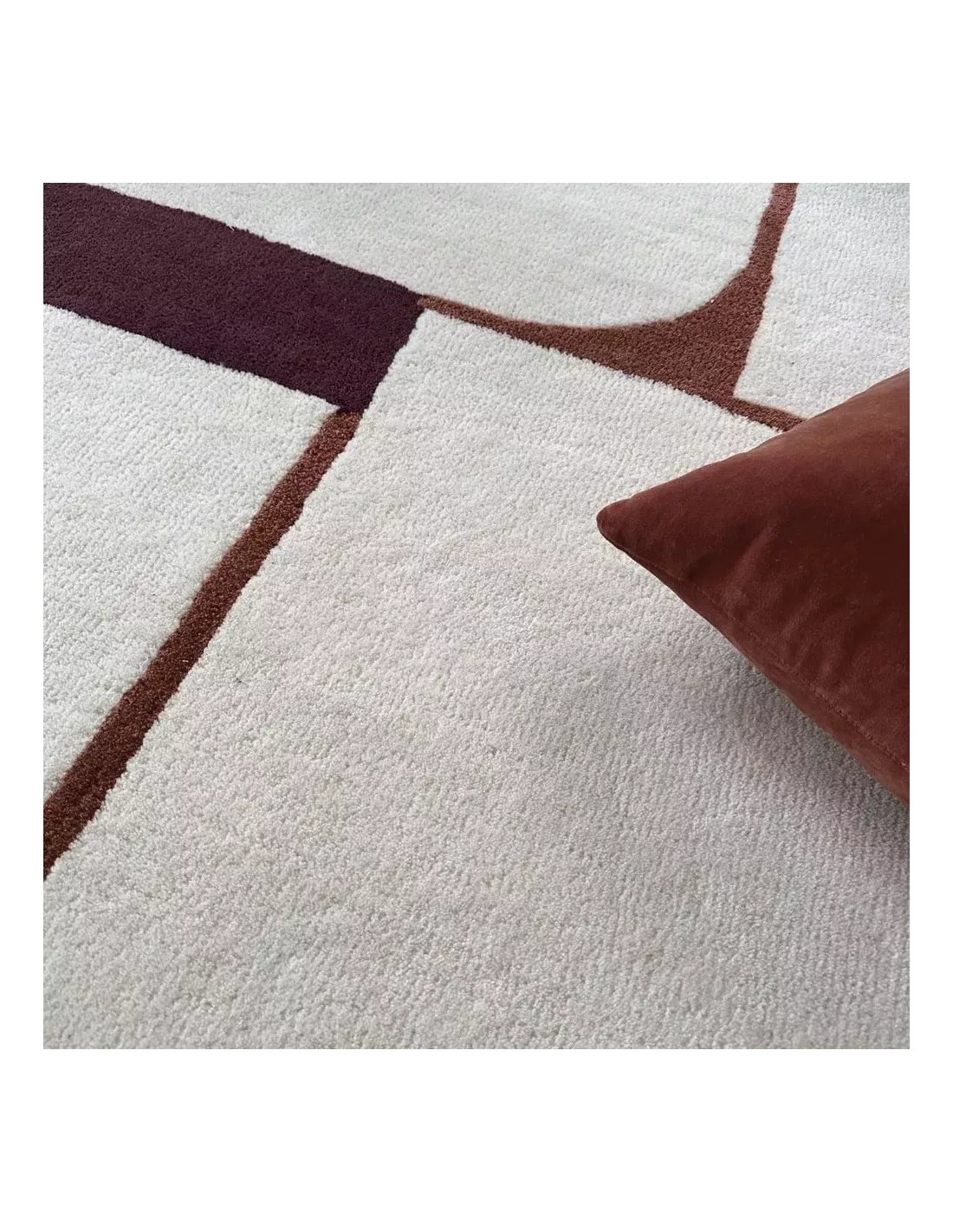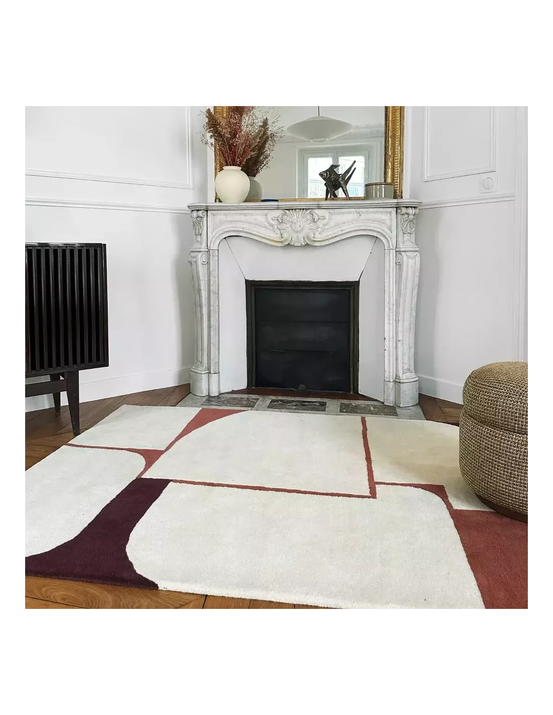 Tapis design fond blanc cassé aux motifs burgundy et rouille, Edito