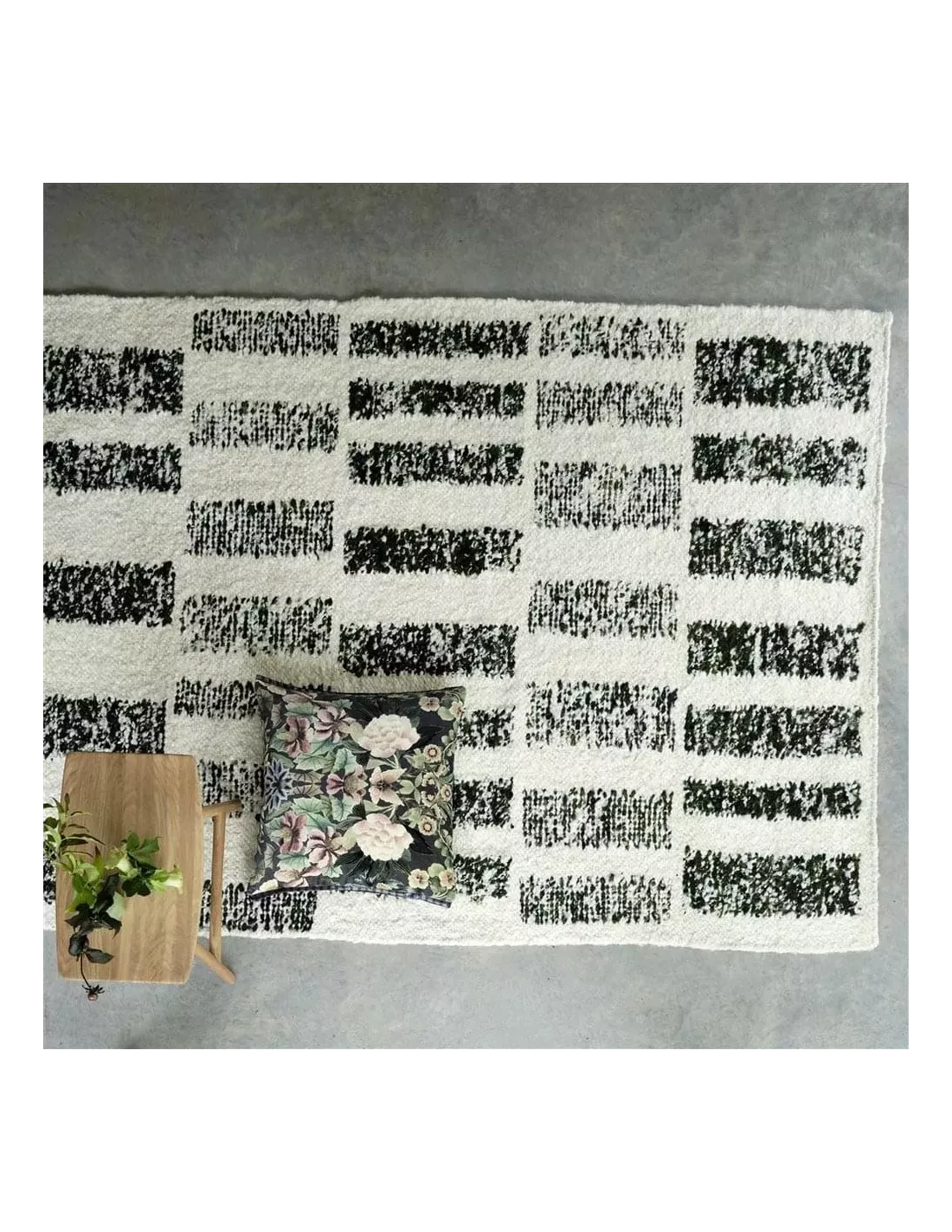 La composition en mélange de laine et de coton est particulièrement bien pensée. La laine apporte la douceur et la chaleur tant recherchées dans une pièce de décoration, tandis que le coton assure une certaine légèreté ainsi qu’une facilité d’entretien appréciable. Ce mariage de matières crée une texture riche et harmonieuse, qui se marie à merveille avec les lignes épurées d’un intérieur moderne.
