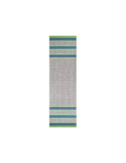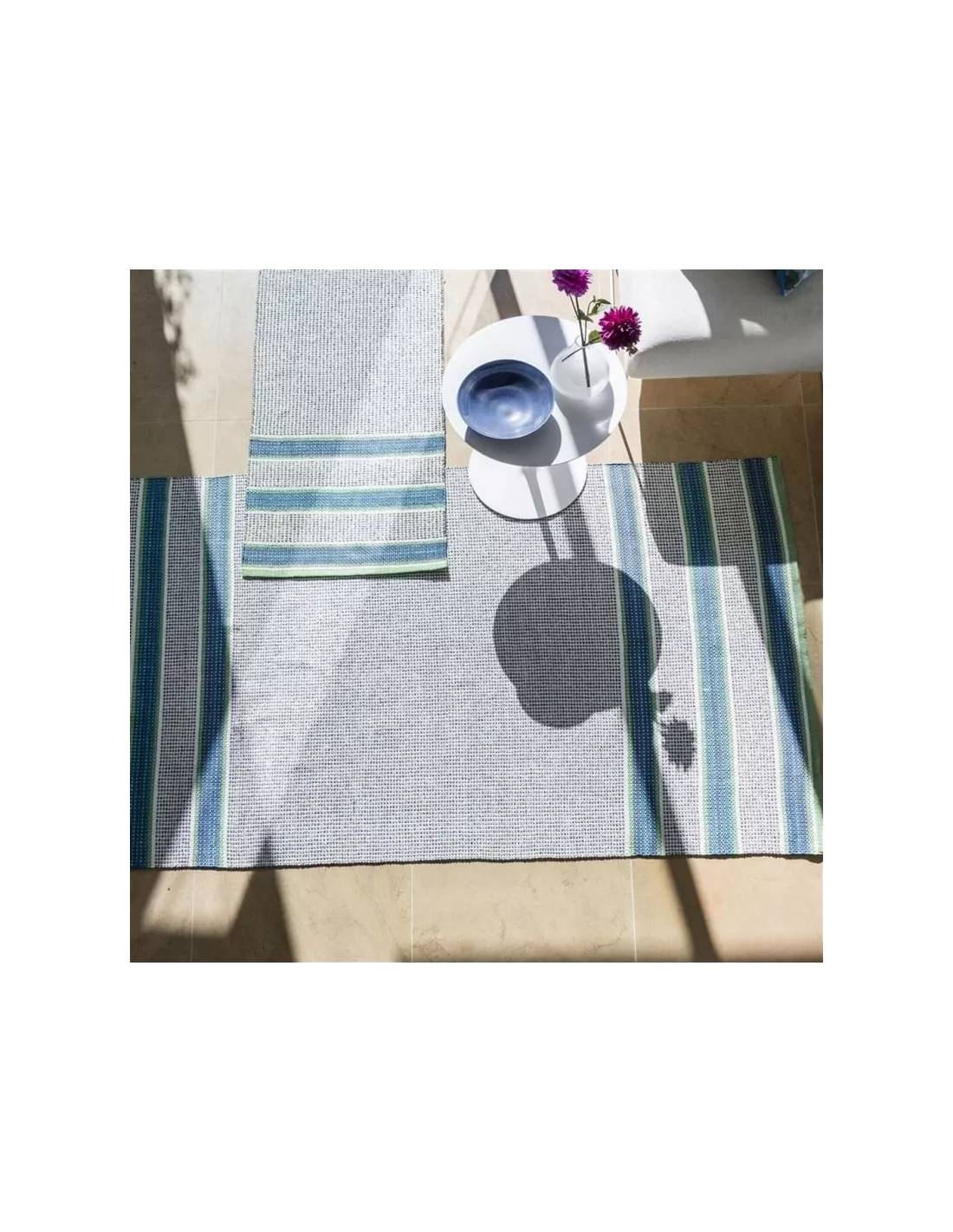 Tapis de couloir design outdoor à rayures bleu et blanc, Designers Guild