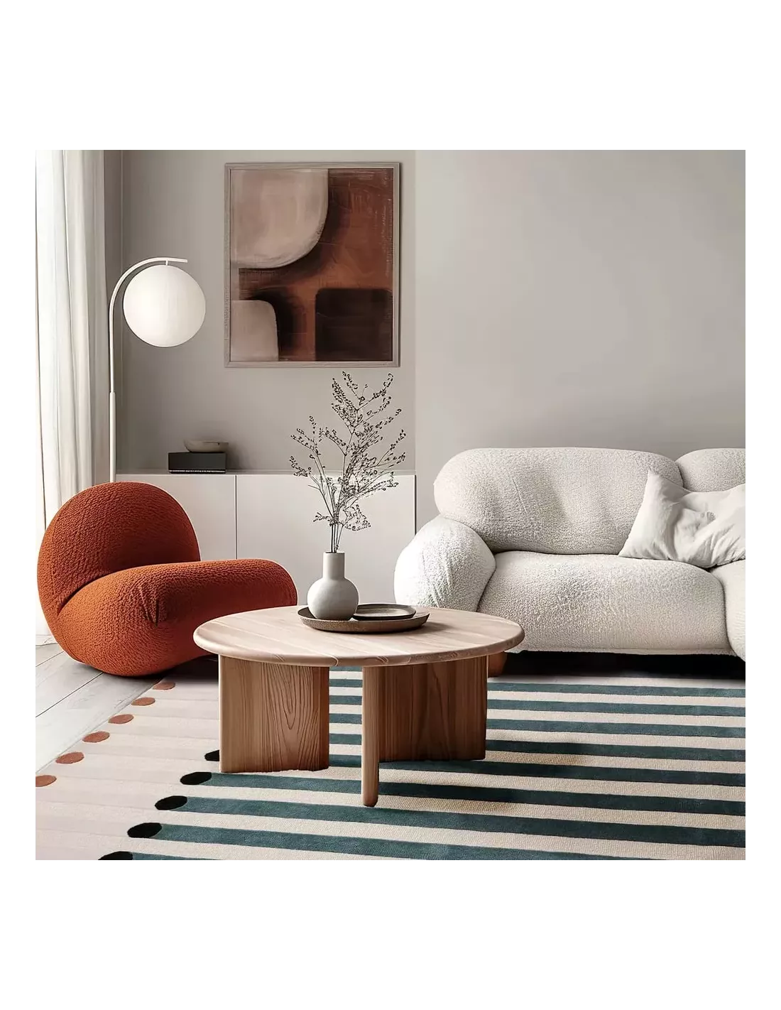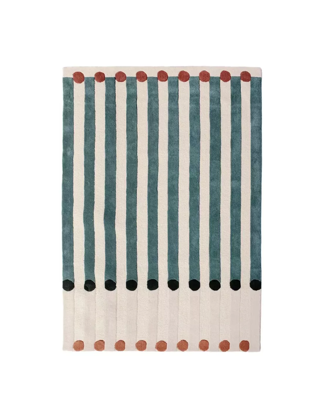 Osez l’audace graphique et apportez une touche de caractère à votre intérieur avec le tapis Dott. Mêlant lignes verticales bleues et motifs circulaires en nuances terracotta et crème, ce tapis joue sur un subtil équilibre entre simplicité et originalité.