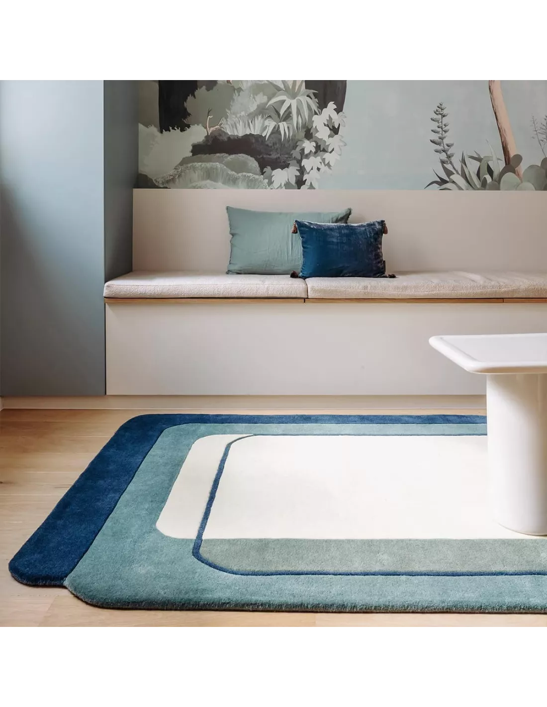 Fabriqué en laine de Nouvelle-Zélande tuftée à la main, le tapis Echo bleu séduit par l’harmonie de ses rectangles, délicatement superposés en une symphonie de bleus. Inspiré par une esthétique contemporaine, il incarne l’élégance moderne dans toute sa splendeur. Ce chef-d’œuvre est non seulement une déclaration de style, mais aussi un symbole d’engagement éthique.