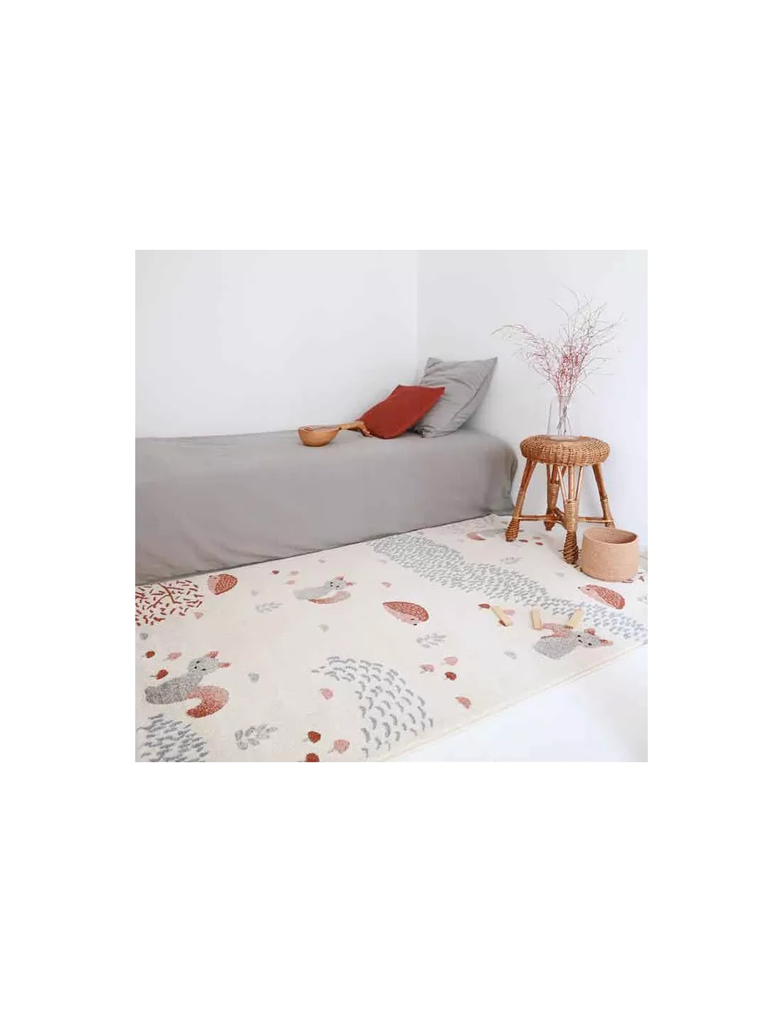 Tapis enfant au graphisme frais et plein de détails rappelant les animaux de la forêt, Nattiot