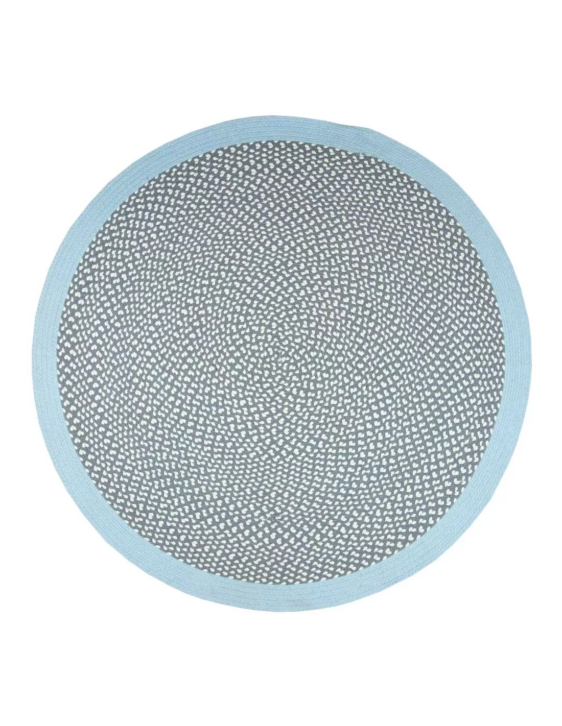 Tapis enfant rond bleu gris blanc en coton, Nattiot