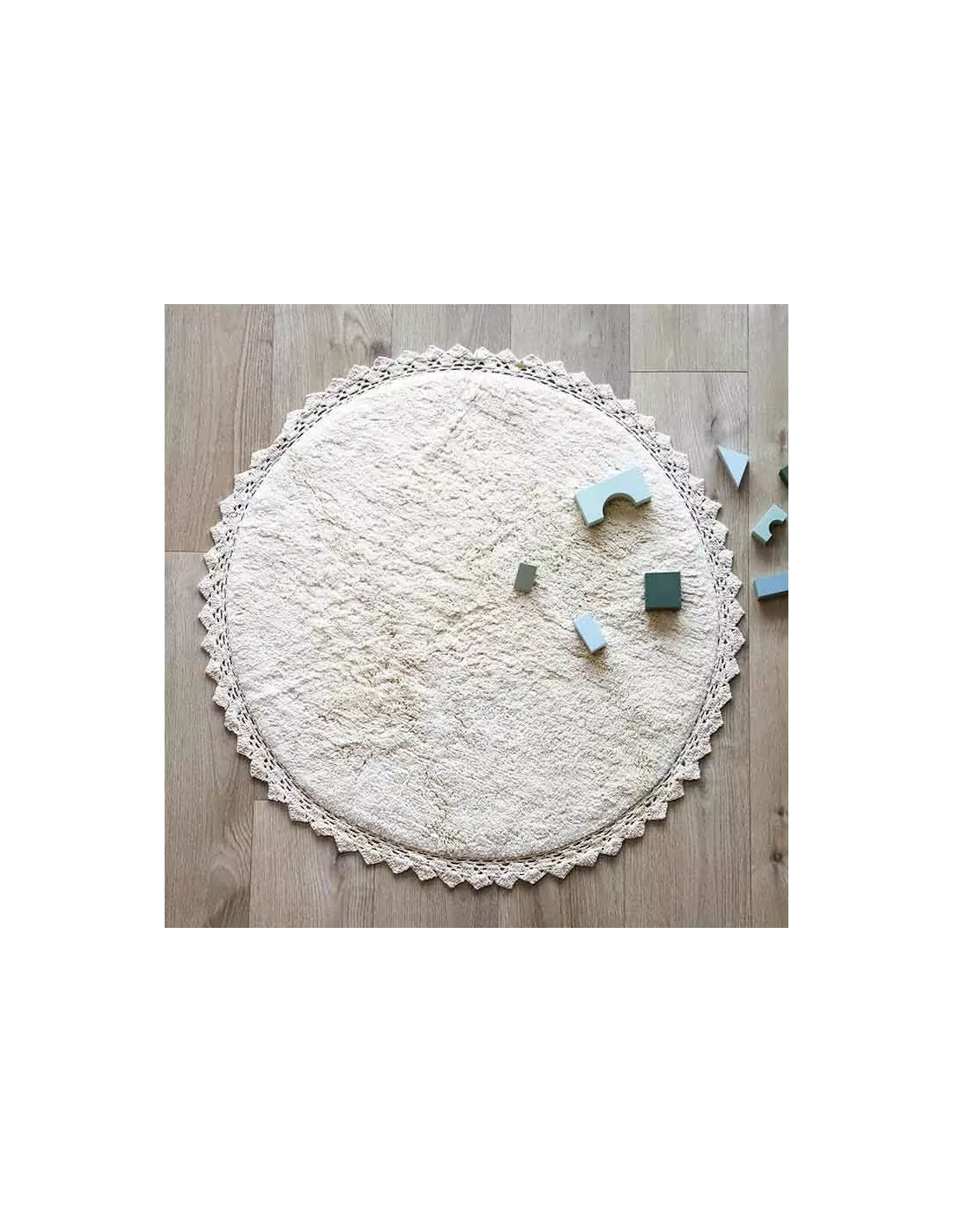 Tapis enfant rond uni écru en coton finition crochet, Nattiot