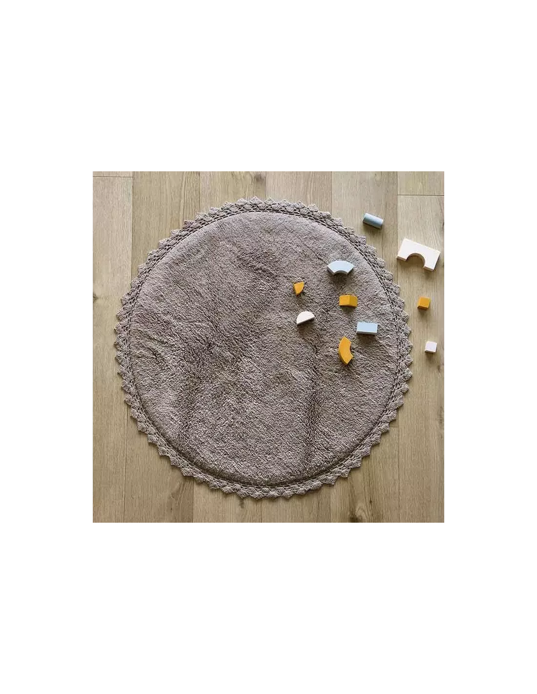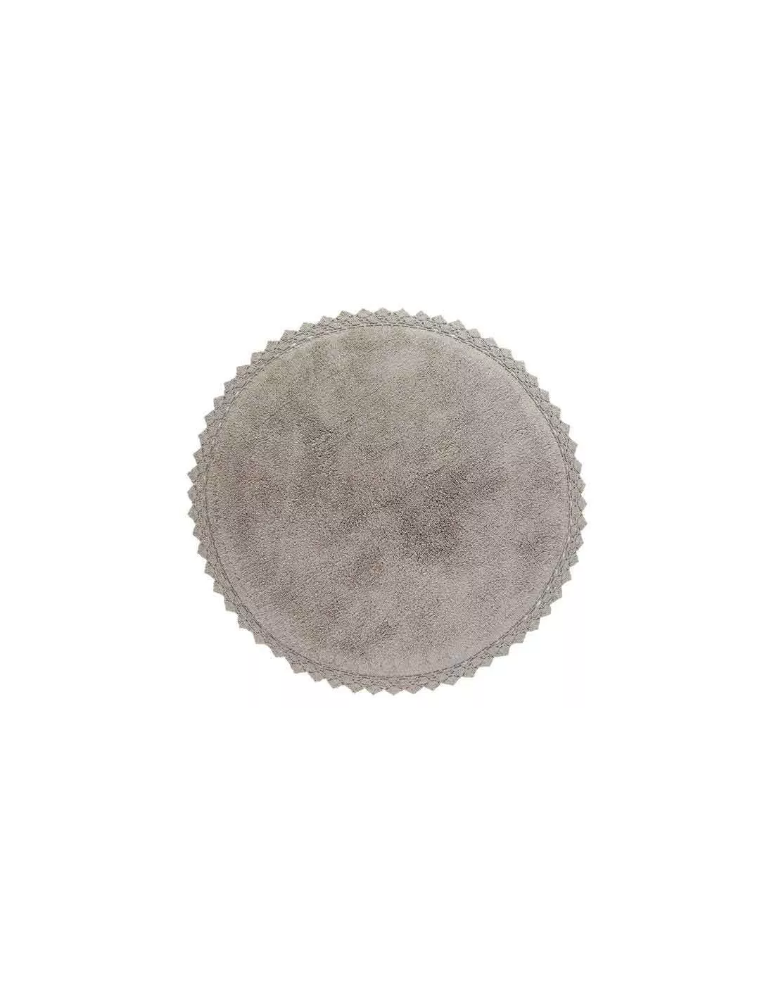 Tapis enfant rond uni gris en coton finition crochet, Nattiot