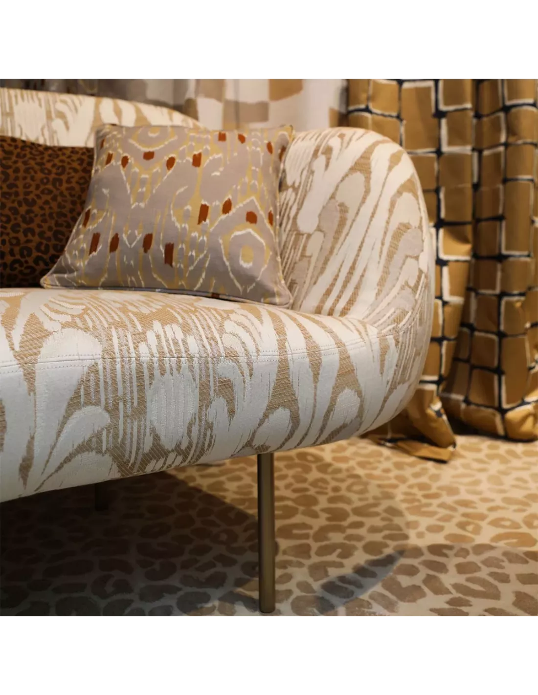 Félin imprègne les lieux d’un parfum de la savane. Une profusion de figures à l’allure de rosettes s’épanouit sur son fond clair faisant écho à la robe d’un léopard. Une bordure unie souligne l’ensemble avec une touche contemporaine. Imaginé par Lelièvre, ce tapis graphique bicolore est le fruit d’un tuftage à la main de fibres de laine et de tencel.
