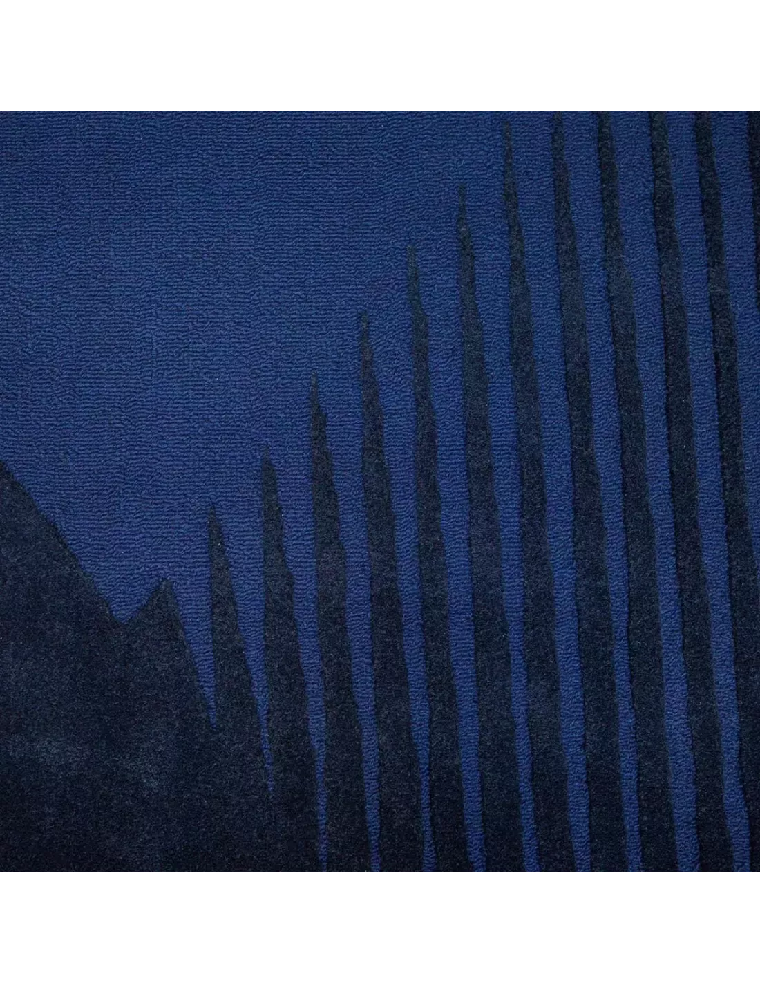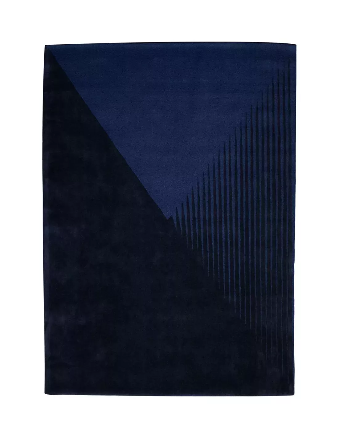 Simplicité et sophistication se retrouvent dans le tapis Glauko Indigo proposé par la maison Lelièvre. Résolument contemporain, son motif géométrique allie deux bleus profonds coordonnés. Une partie triangulaire est ornée de rayures discrètes, et les trois parties restantes diffèrent en nuances. Ce jeu de luminosité confère un effet de relief. Sa surface tuftée main, coupée et bouclée lui offre une texture agréable au toucher.
