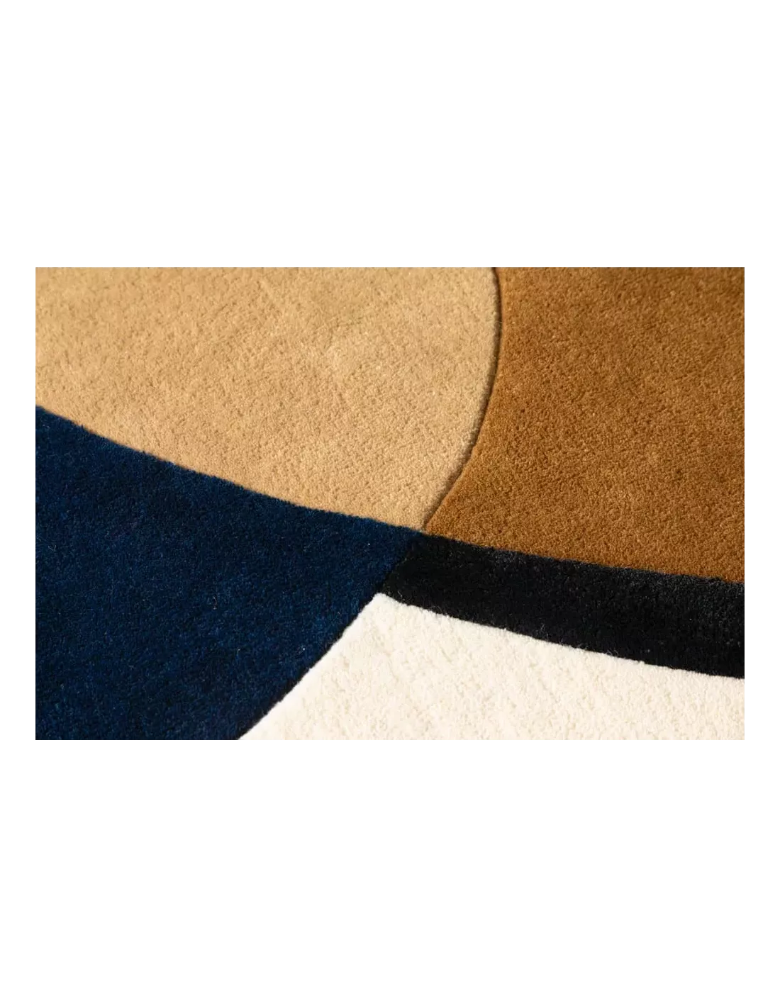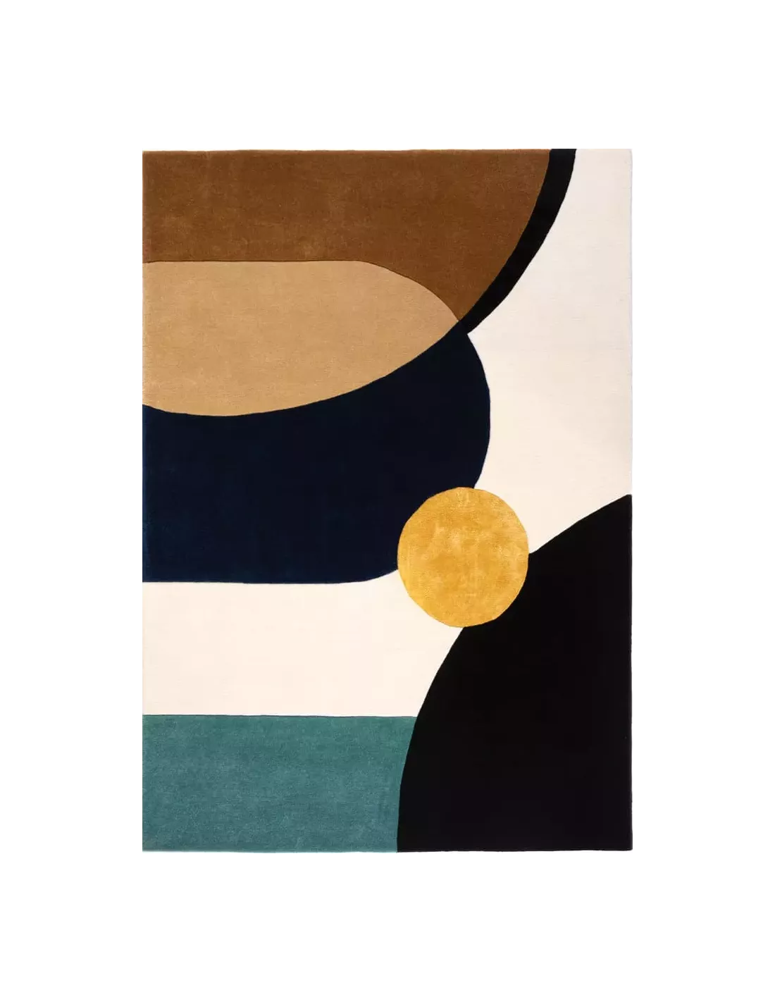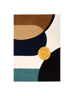 Son design multicolore comprend des motifs courbes dans les tons blanc, noir, marine, brun, jaune et céladon, apportant une touche d’élégance à la pièce.