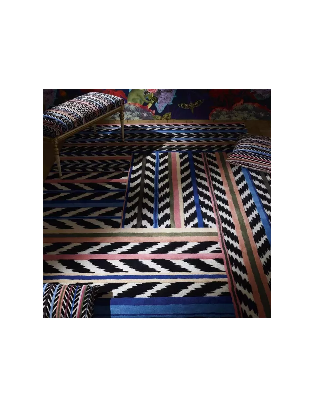 Au-delà de son design épuré et graphique, ce tapis se distingue également par son motif inspiré de l’un des symboles emblématiques de la Maison Lacroix. Un motif géométrique de chevrons ikat qui confère au tapis une dimension artistique et contemporaine.