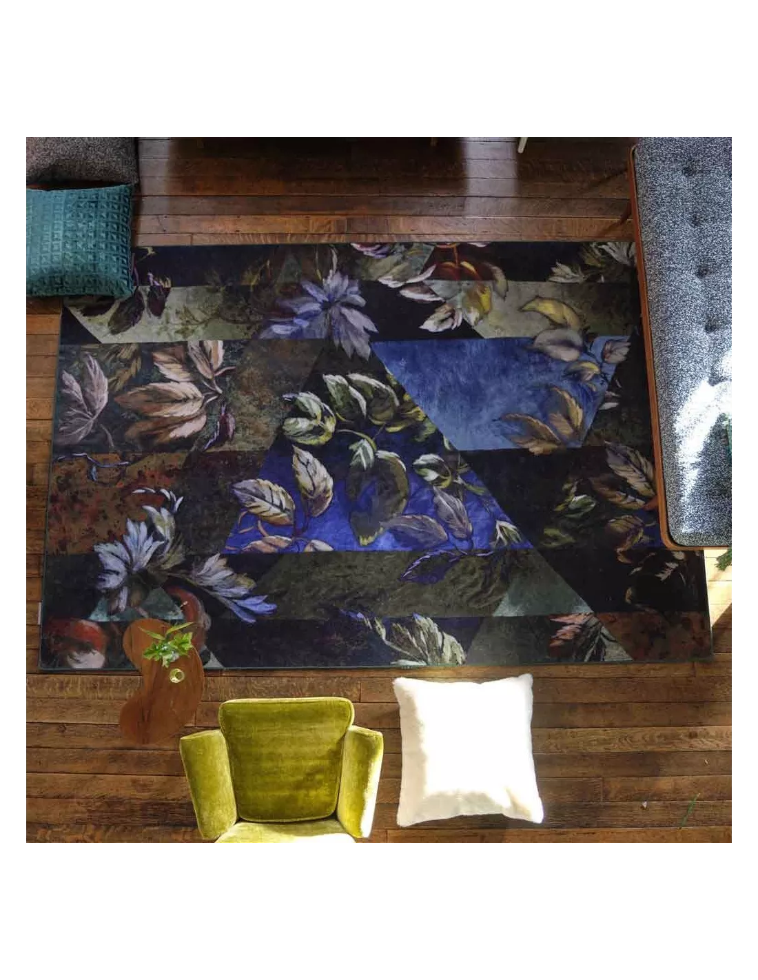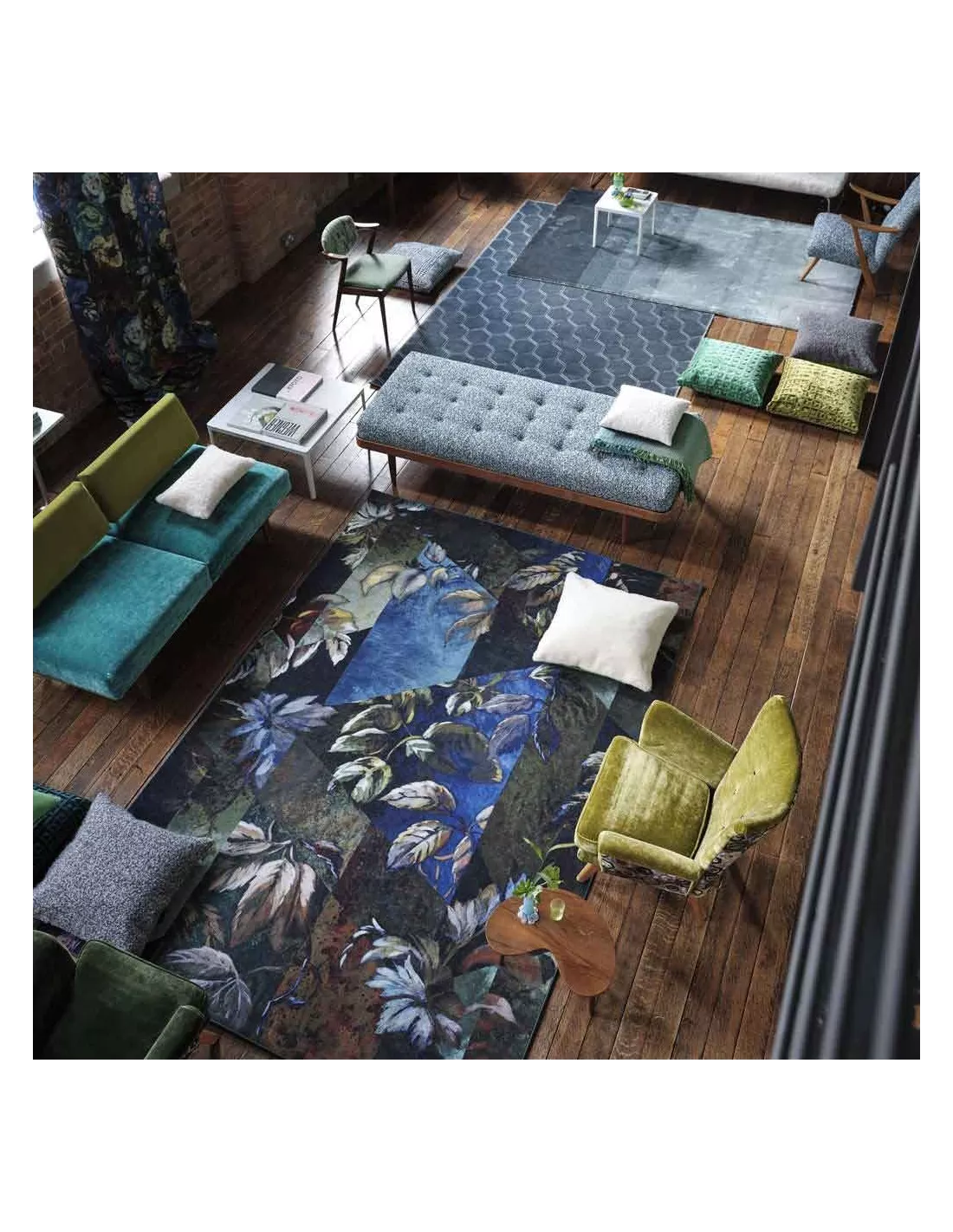 Le tapis Jangal Moss est une belle réalisation de Designers Guild. Un tapis contemporain au motif géométrique, riche en couleur et de haute résistance dans les tons de noir, bleu et vert. Imprimé numériquement sur un fond en polyamide, poil court.
