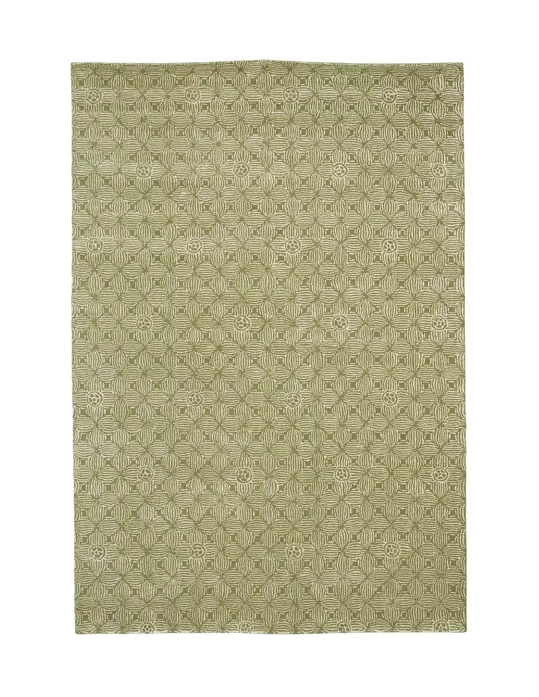 Au-delà de cette structure géométrique épurée, ce tapis s’anime grâce à un jeu subtil de lignes et de touches florales qui viennent étoffer le dessin. Cet équilibre entre lignes pures et éléments végétaux confère à ce tapis une dimension à la fois moderne et rassurante.