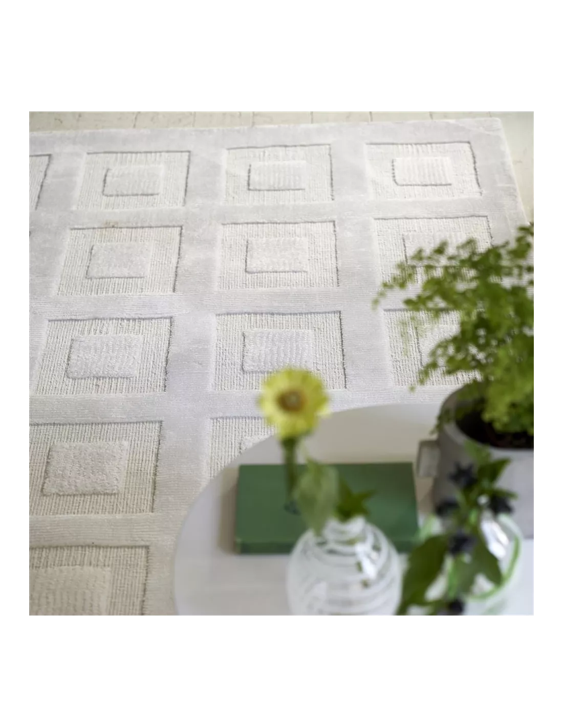 Tapis design blanc au motif géométrique en relief, Designers Guild