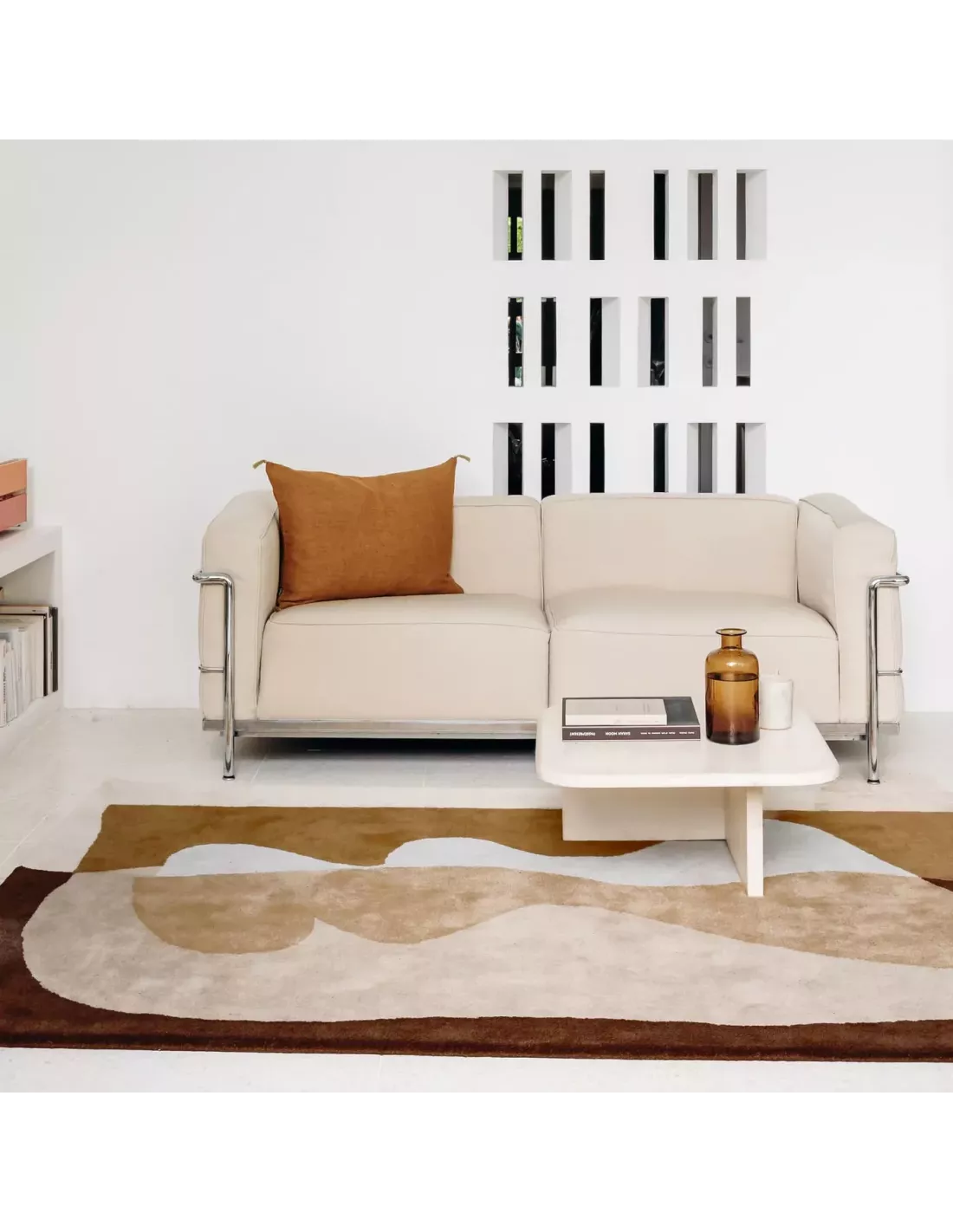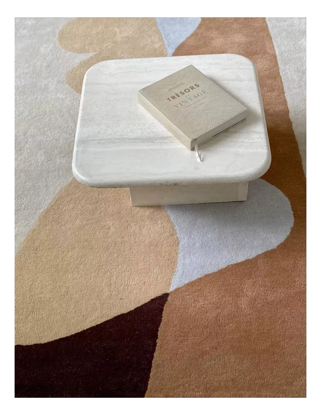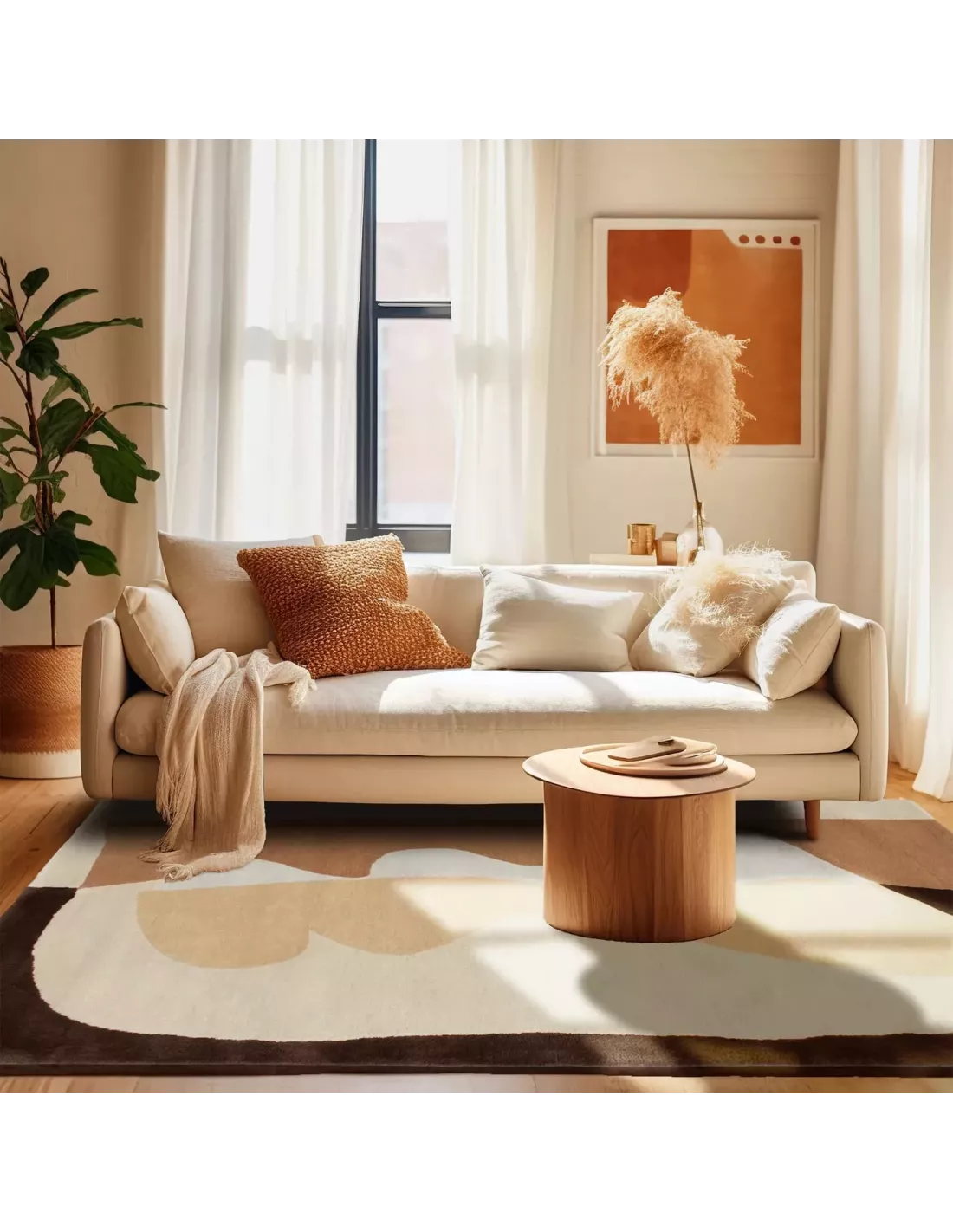 Tapis design fond blanc cassé aux motifs marron, beige et ocre, Edito