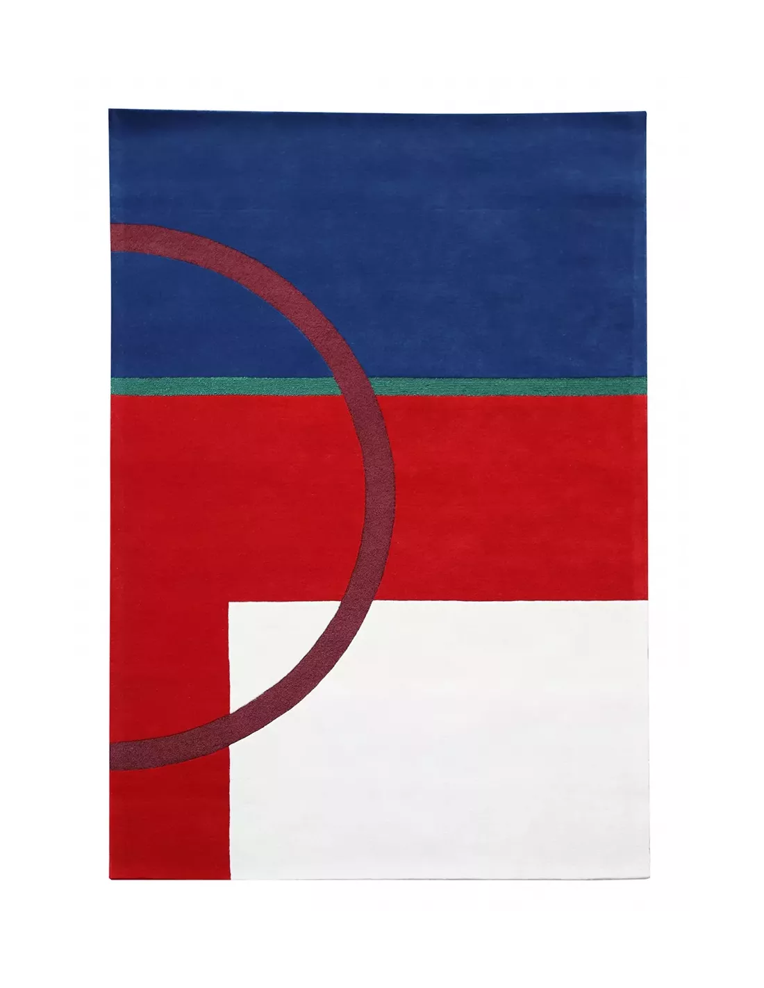 Fidèle à son style graphique et épuré, le designer a imaginé pour ce tapis des motifs géométriques d’une grande pureté de lignes. Dans un jeu de contrastes saisissant, les grands aplats de couleurs vives sont parsemés de traits et de formes géométriques évoquant l’univers ludique du sport et du jeu. Véritables œuvres d’art pour le sol, ce tapis capte instantanément le regard et insufflent une dynamique unique à tout espace.
