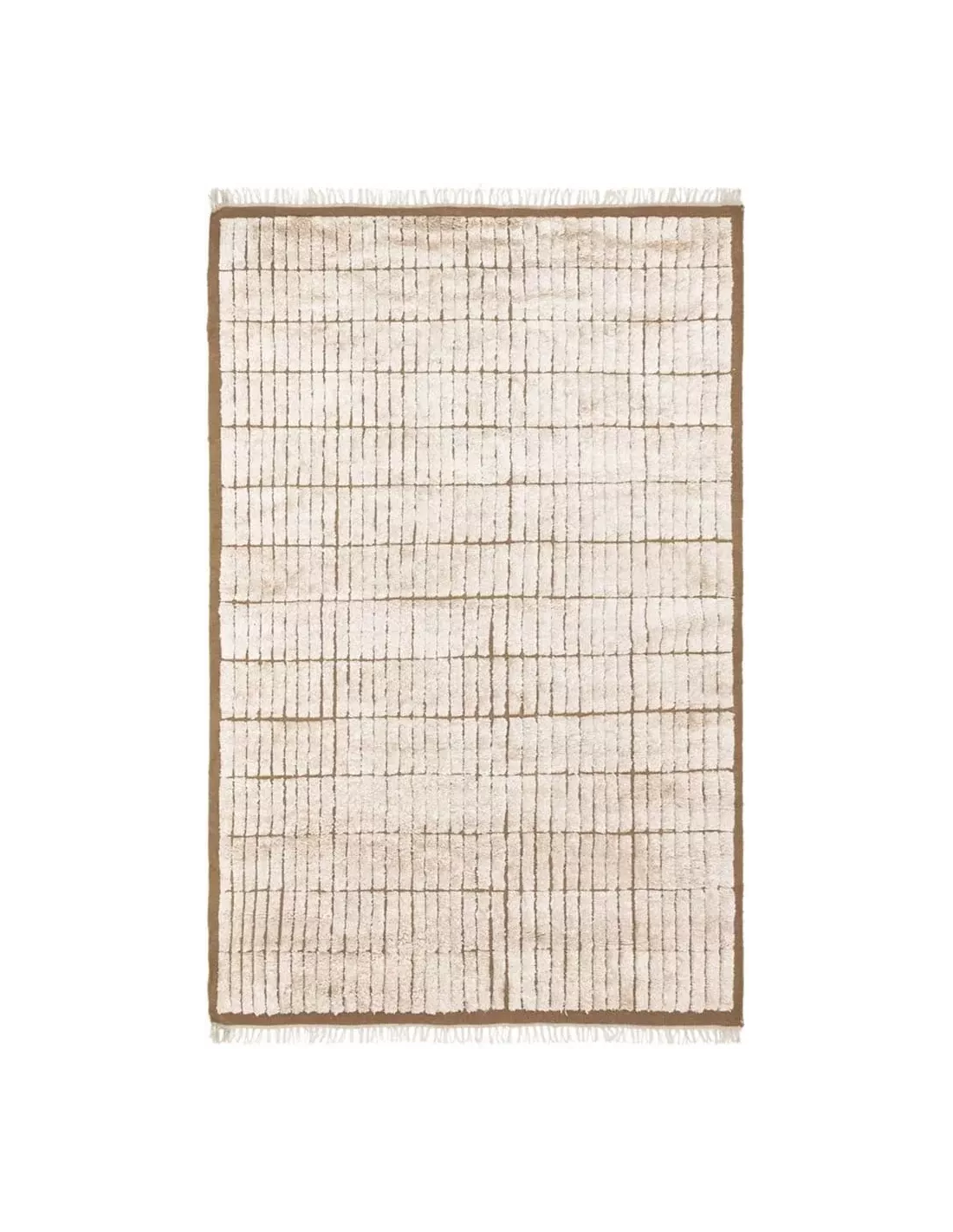 Le tapis Tokusa Birch, signé Designers Guild, se distingue par son alliance subtile entre naturel et géométrique. Confectionné à partir de bambou noué, il présente une texture douce et soyeuse au toucher. Les rectangles qui composent son motif géométrique arborent des teintes neutres, créant une palette harmonieuse et apaisante.