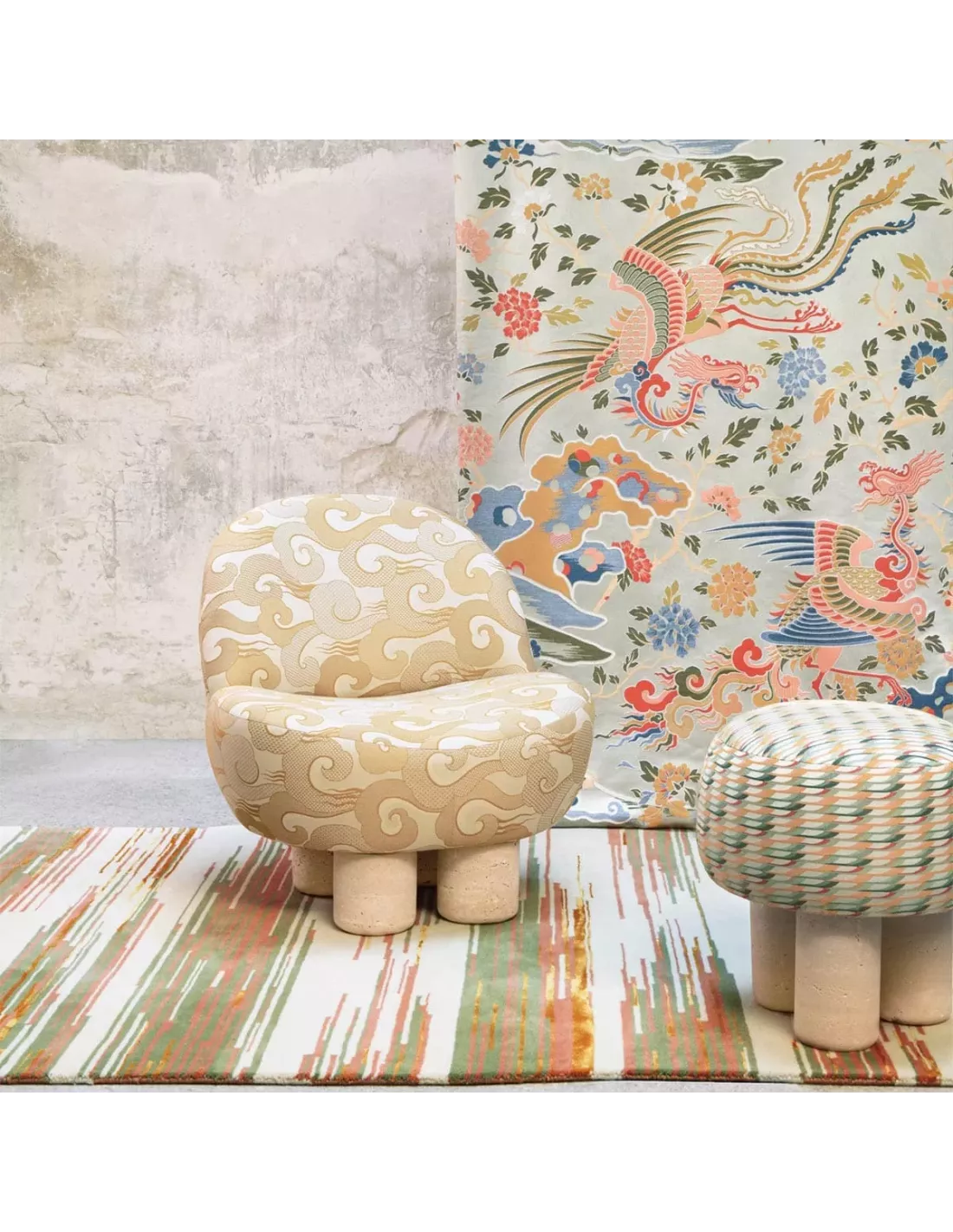 Le tapis Zig Printemps de Lelièvre est une véritable œuvre de design pour sublimer votre intérieur. Composé d’un mélange de 85% de laine de Nouvelle-Zélande et de 15% de viscose, ce tapis tufté main et coupé offre un subtil équilibre entre la matité de la laine et la brillance de la viscose.