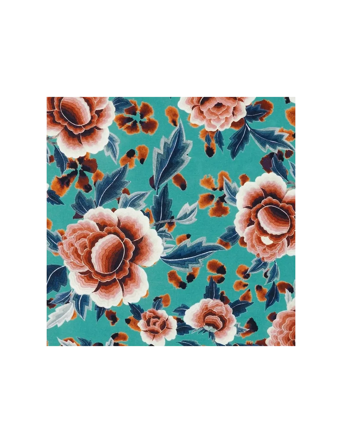 Le motif romantique du tissu China Town Aqua Outdoor présente des pivoines riches en couleurs qui contrastent avec un fond uni. Les nuances de couleurs superposées des pétales créent un jeu de perspective et un rendu naturel. Ce tissu exotique et résistant proposé par Jean Paul Gaultier convient aux usages en extérieur.