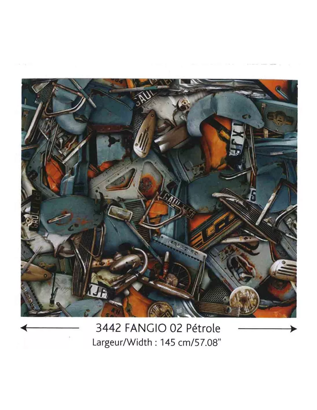 Le tissu Suédine Fangio Pétrole Jean Paul Gaultier est réalisé dans une nouvelle matière résistante 100% coton : une suédine douce et chaleureuse. Une compression de tôle dans laquelle est immortalisé le logo Jean Paul Gaultier, imprimée sur ce tissu d’ameublement au toucher sensuel. Disponible en trois coloris effrontés. Ce tissu d’ameublement est lavable à 30°.