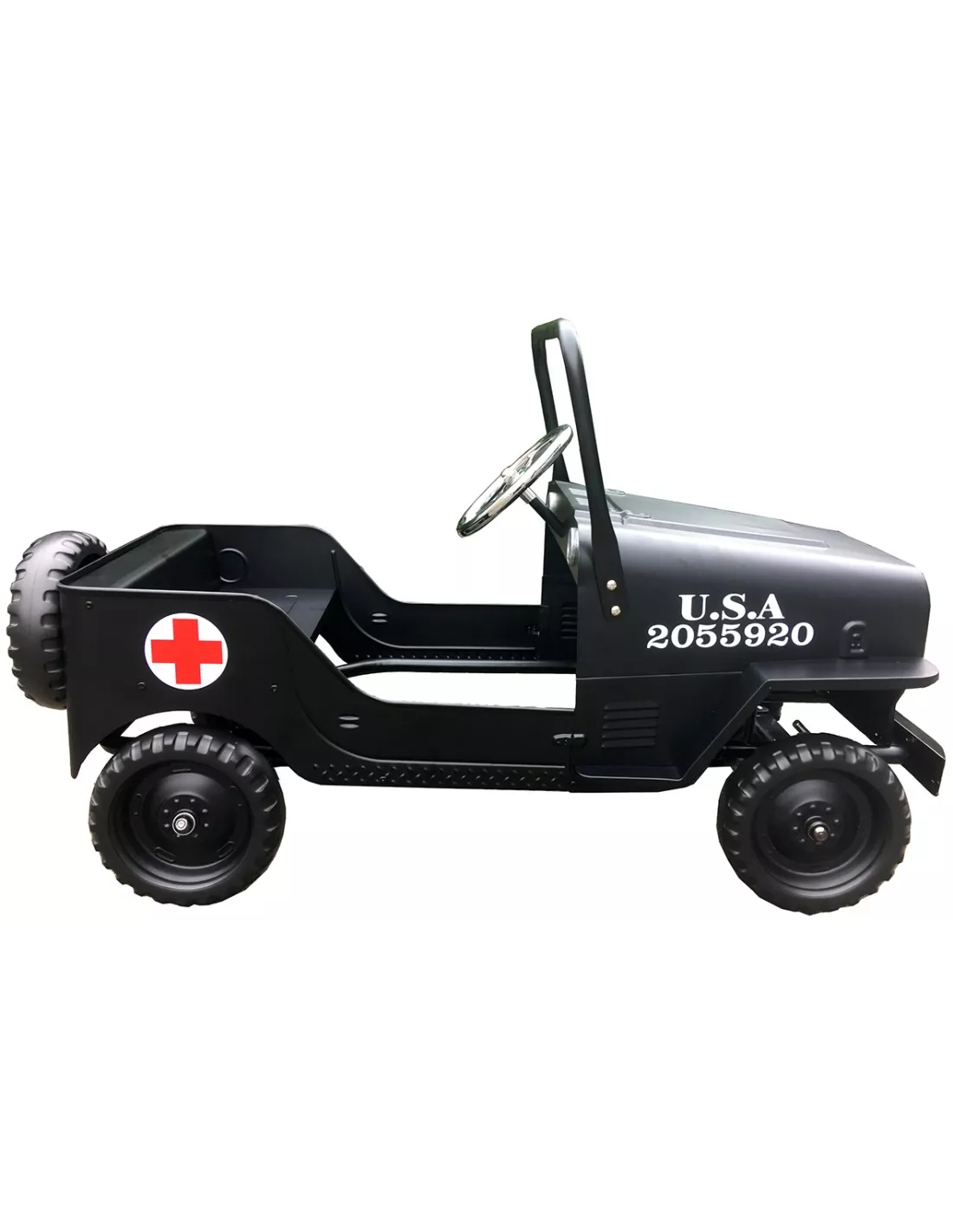 La voiture à pédales Jeep noire est en métal laqué et chromé. Craquez pour son authenticité et la résistance de ces matériaux. Equipé d’un volant directionnel et d’une stabilité à toute épreuve, cette voiture à pédales permet à l’enfant de se déplacer en toute sécurité dans la maison ou en extérieur. Votre enfant partira à l’assaut de toutes les aventures !